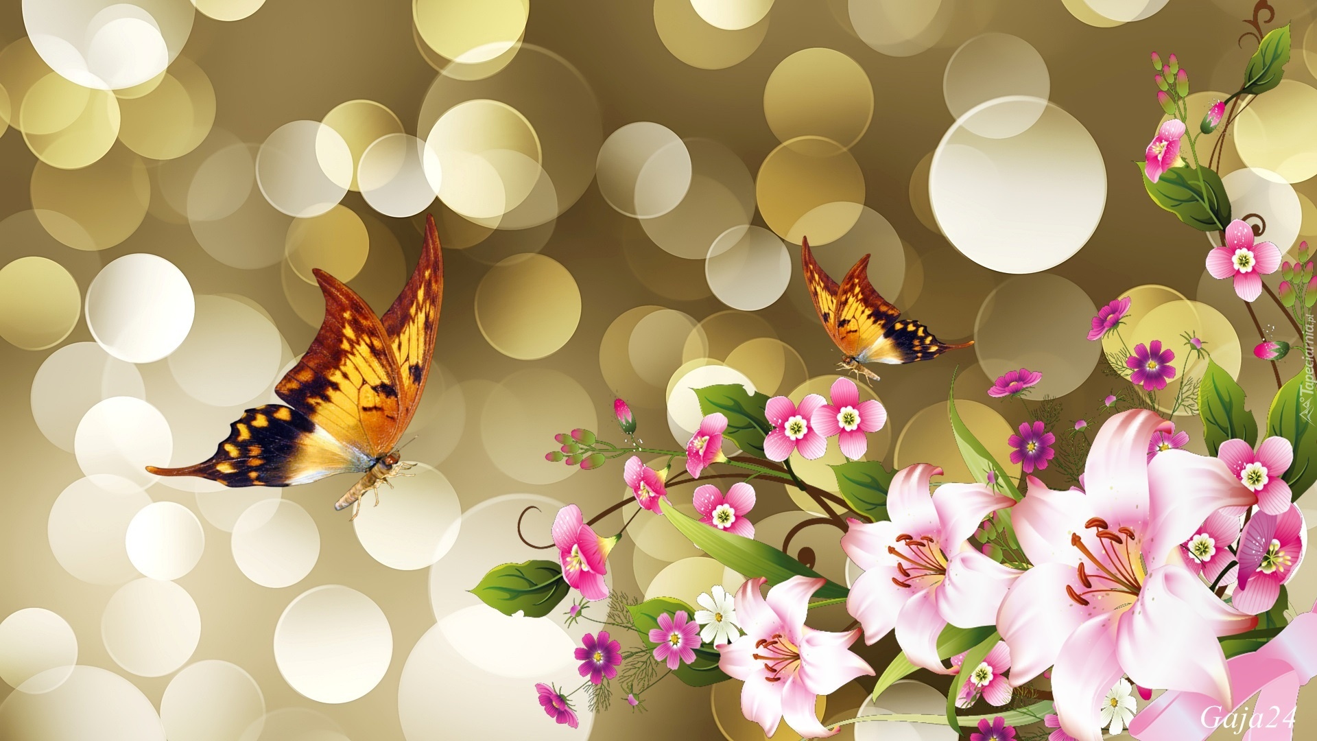 Edytor tapety: Kwiaty, Motyle, Bokeh, Art