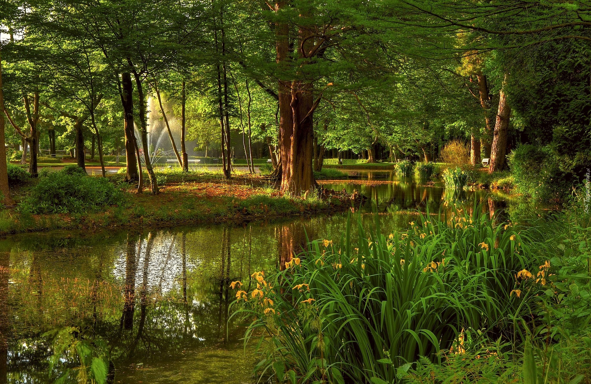 Edytor tapety: Park, Rzeczka, Fontanna, Lato, Drzewa