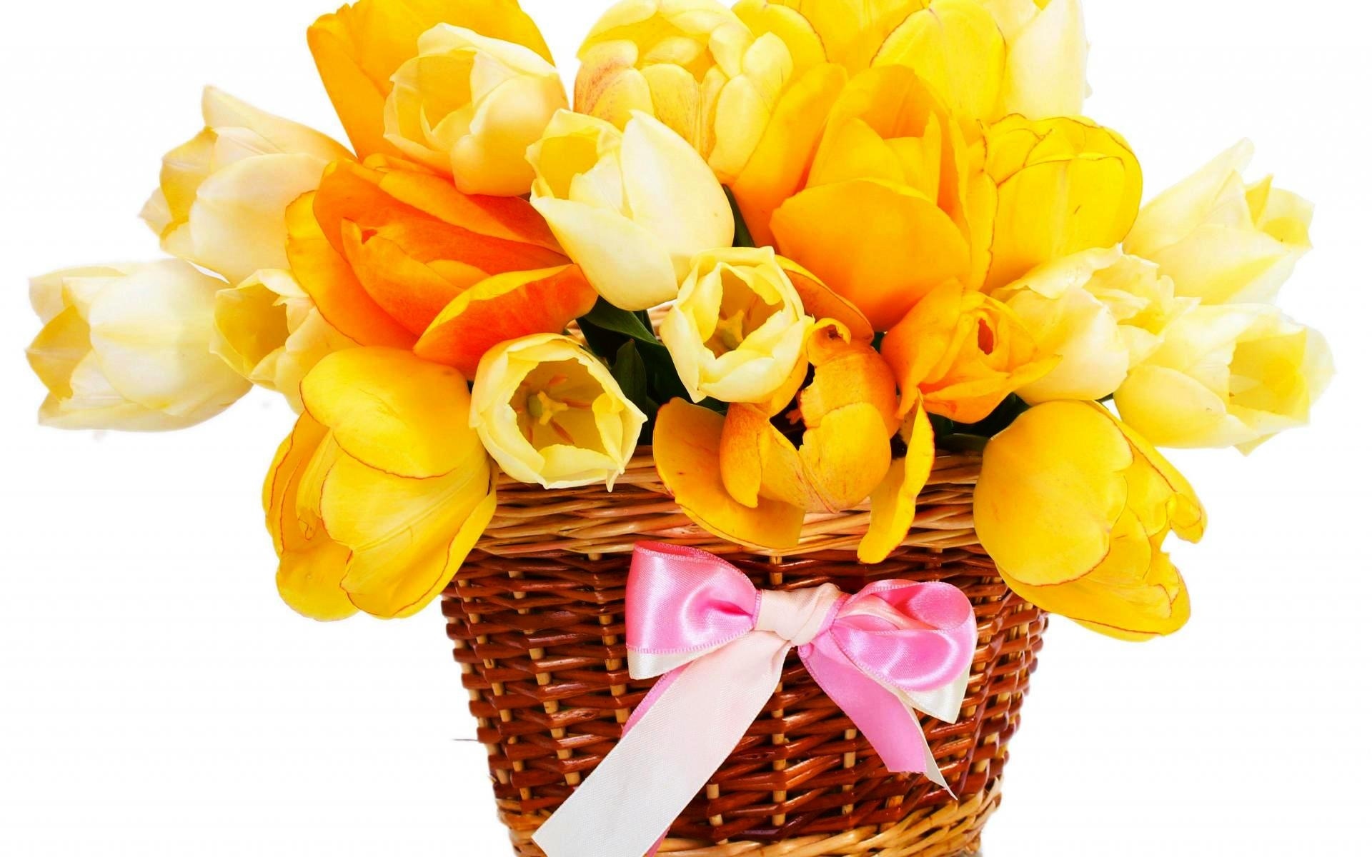 Edytor tapety: Żółte, Tulipany, Koszyczek, Kokarda