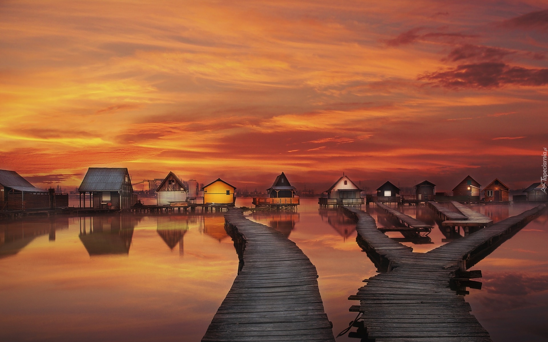 Edytor tapety: Domy, Na, Palach, Pomosty, Zachód, Słonca, Morze, Tropiki