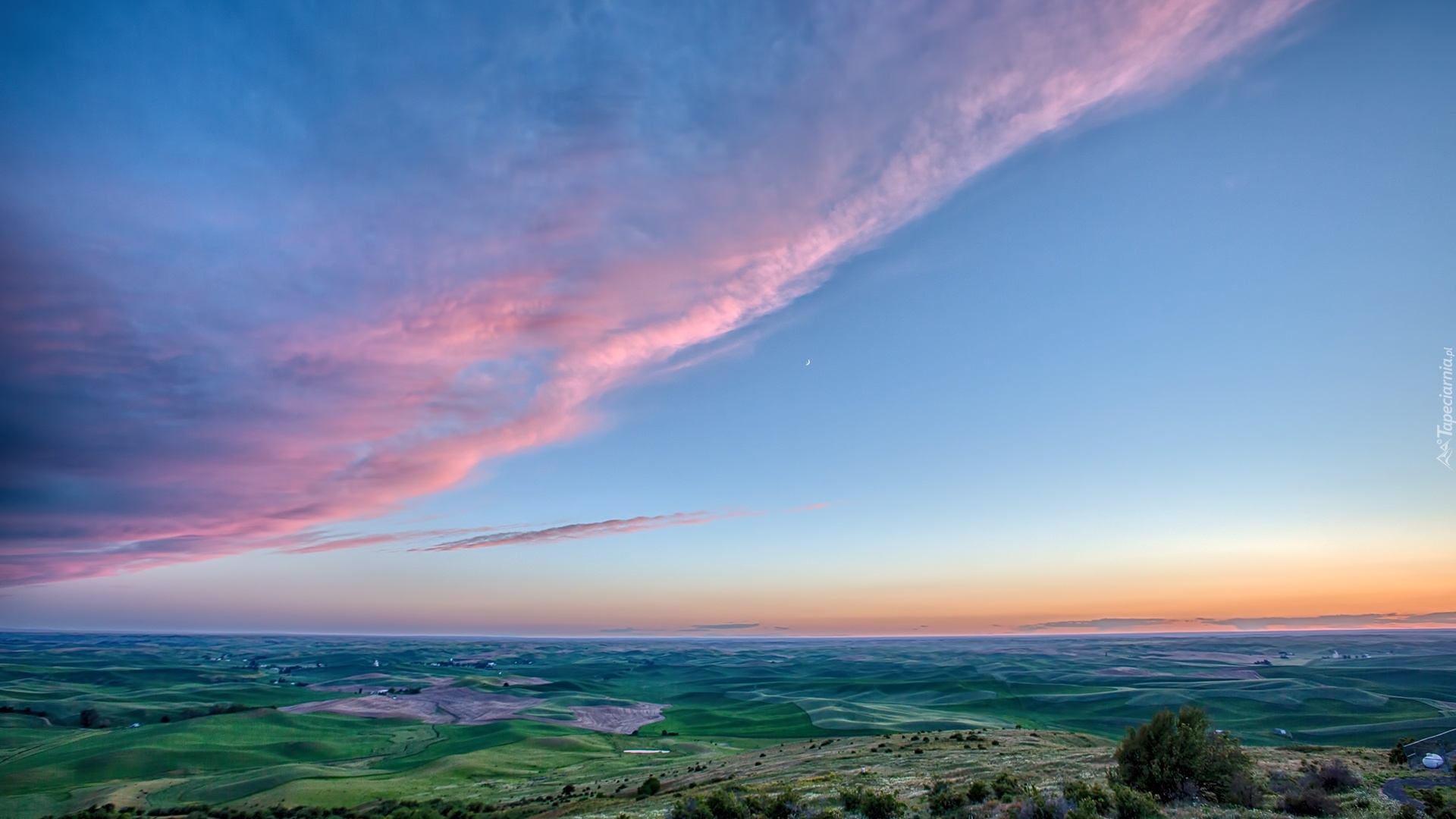 Edytor tapety: Zachód, Słońca, Niebo, Zabudowania, W, Oddali