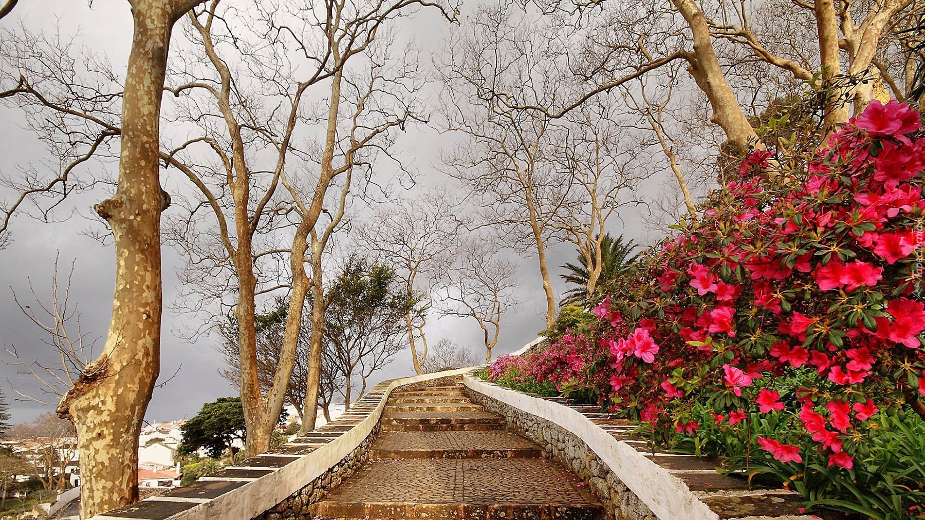 Edytor tapety: Azalia, Różanecznik, Droga, Ścieżka, Drzewa