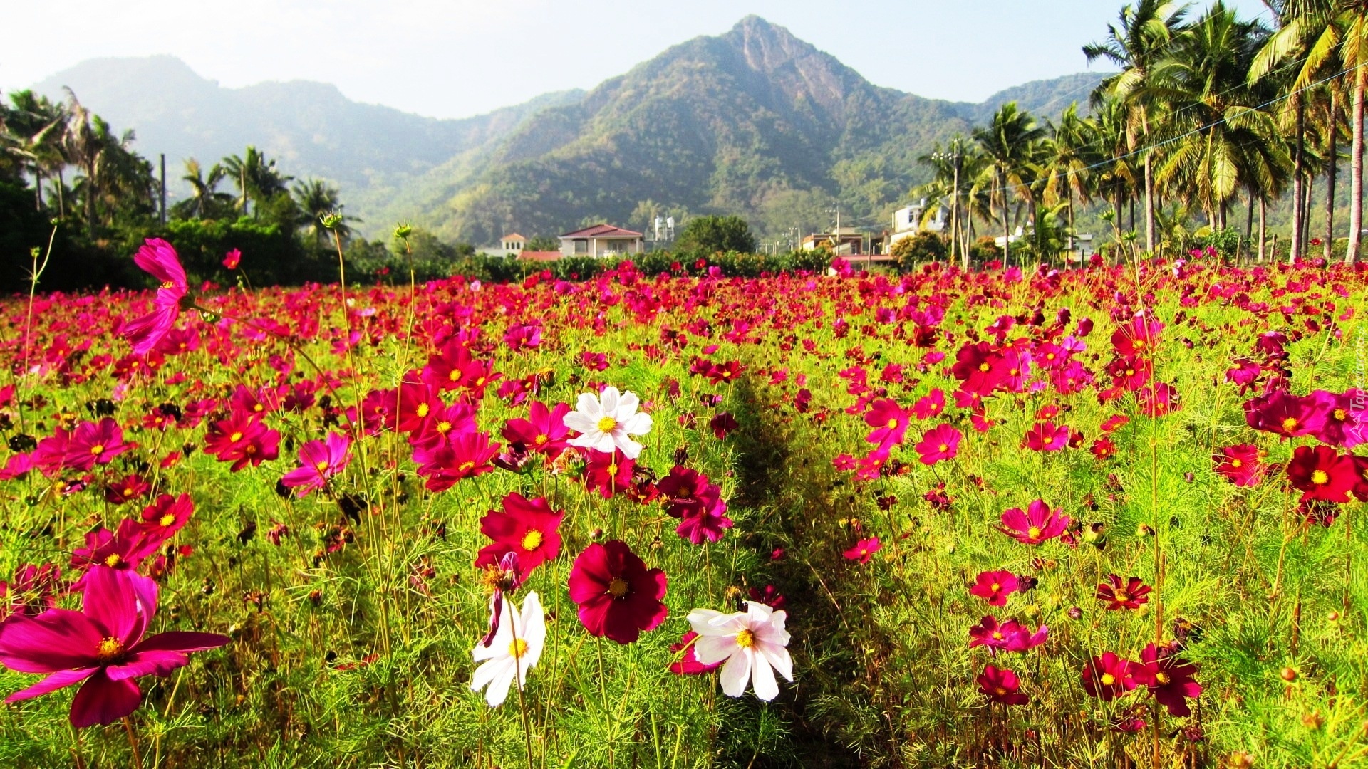 Edytor tapety: Góry, Palmy, Łąka, Kosmea
