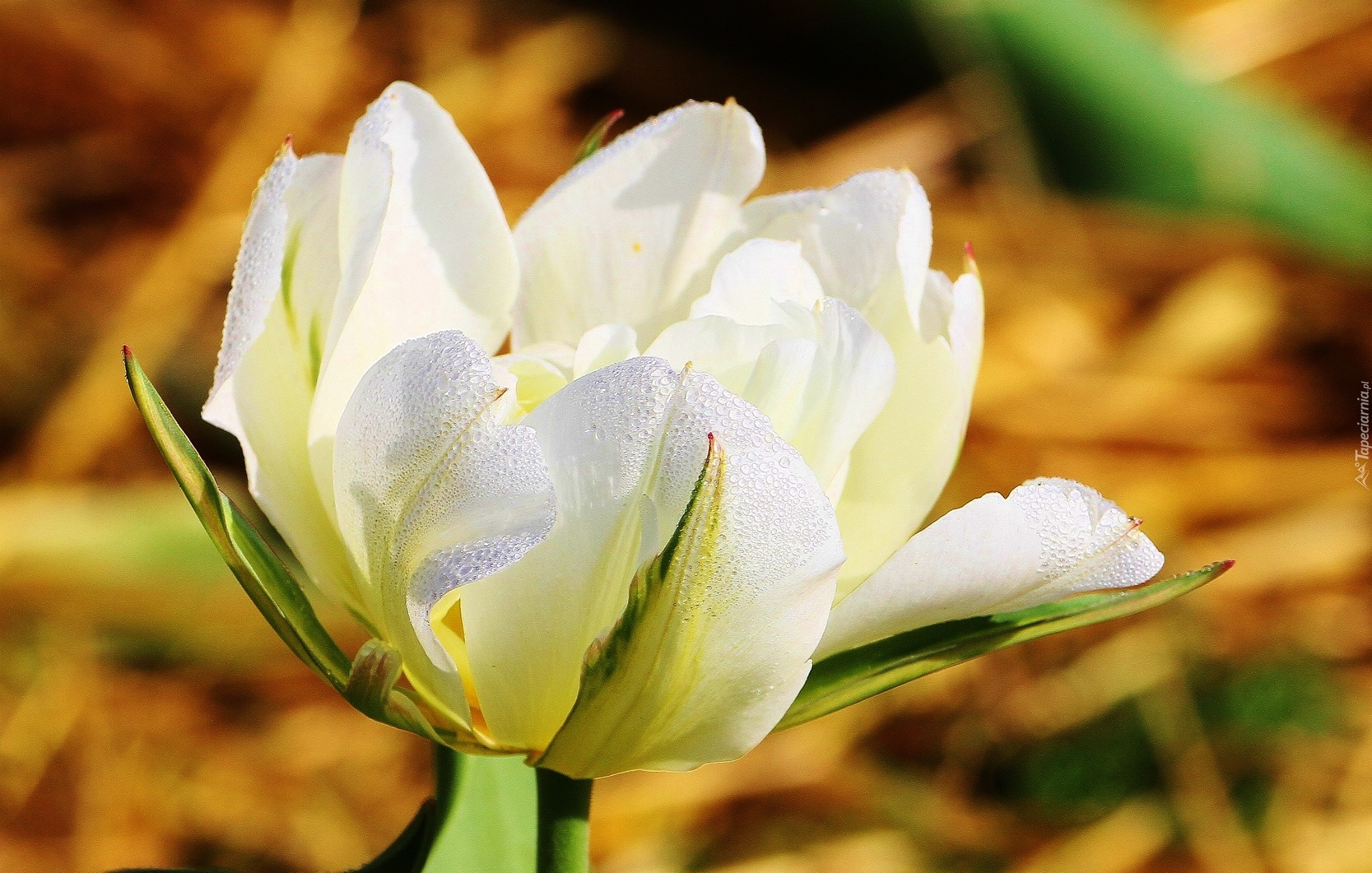 Edytor tapety: Biały, Tulipan, Krople, Rosy