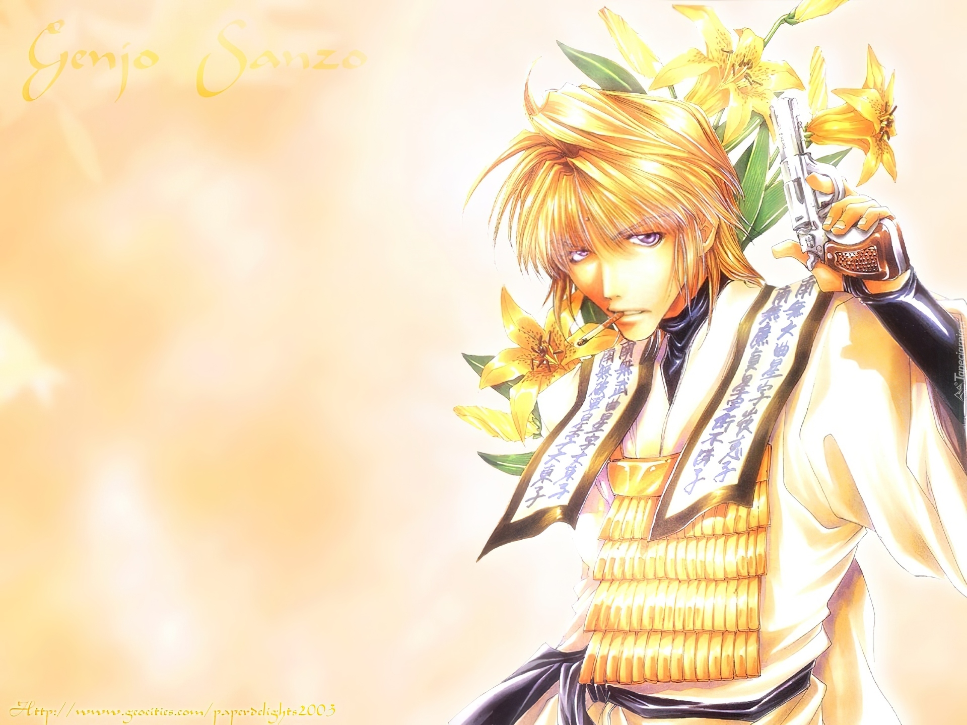 Edytor tapety: Saiyuki, pistolet, kwiat