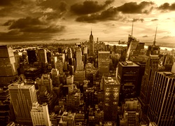 Edytor tapety: Zachód, Słońca, Drapacze, Chmur
