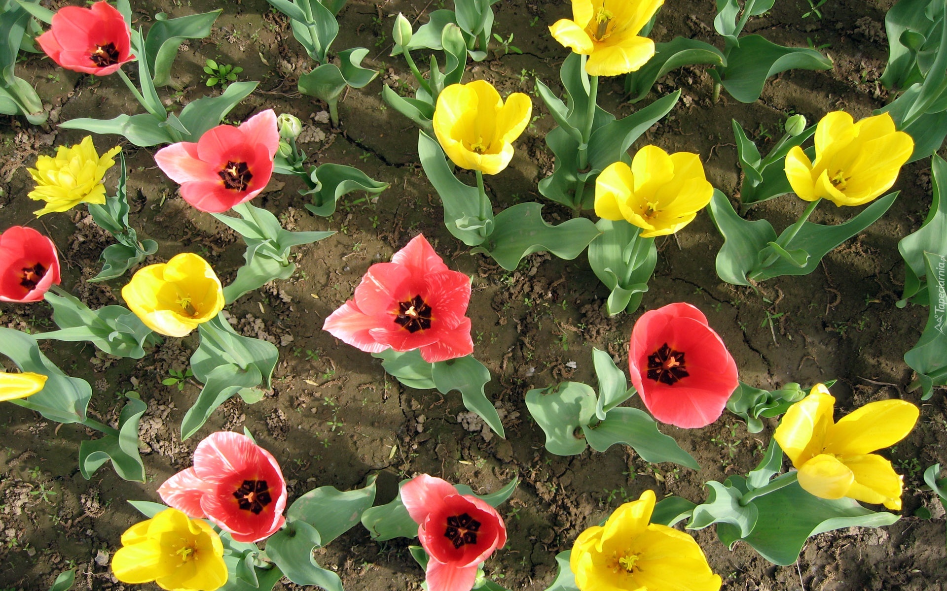 Edytor tapety: Żółte, Czerwone, Tulipany