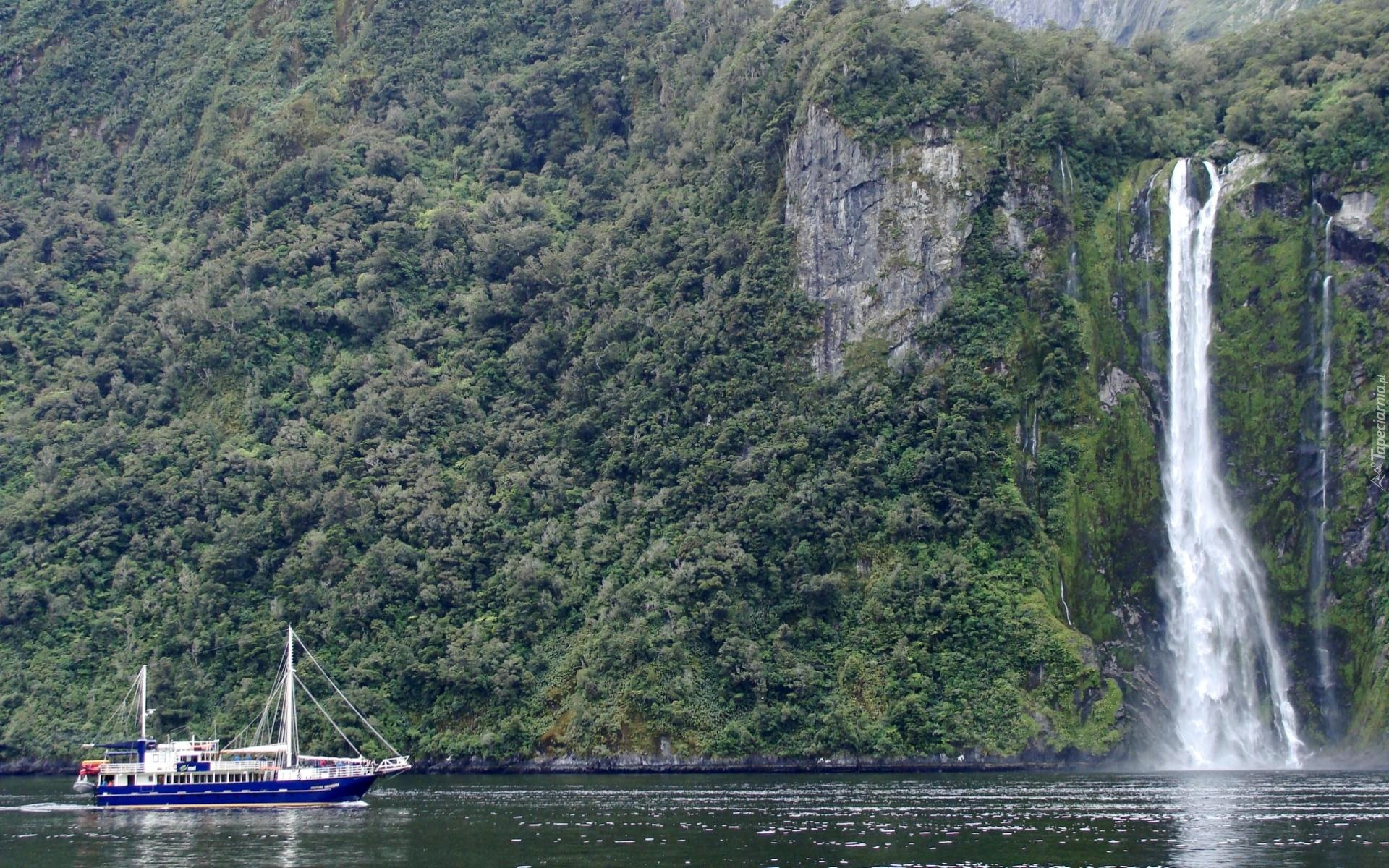 Edytor tapety: Wodospad, Jezioro, Statek, Wycieczkowy