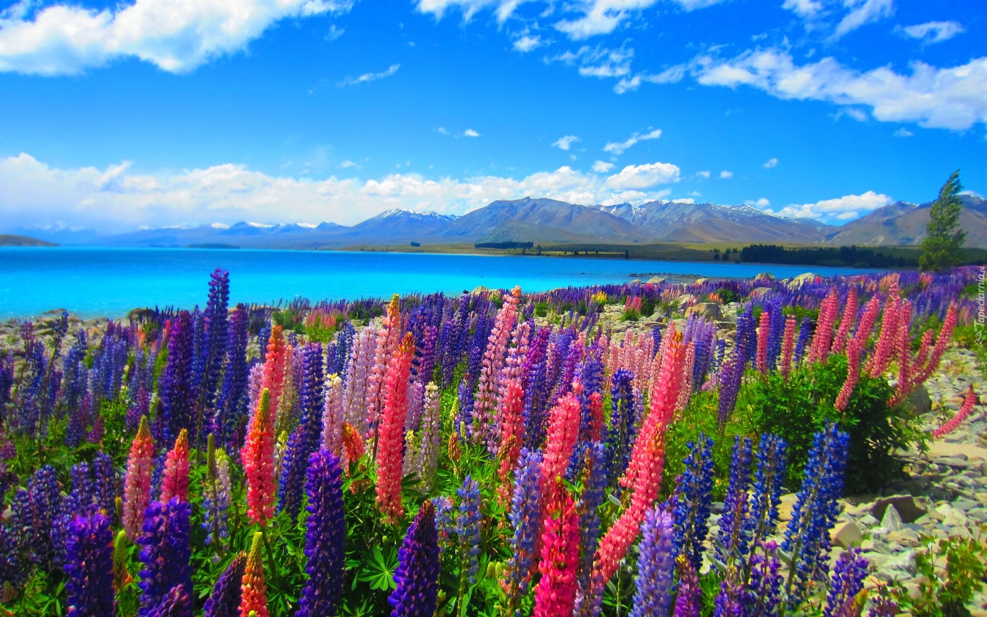 Edytor tapety: Jezioro, Góry, Łubin, Islandia