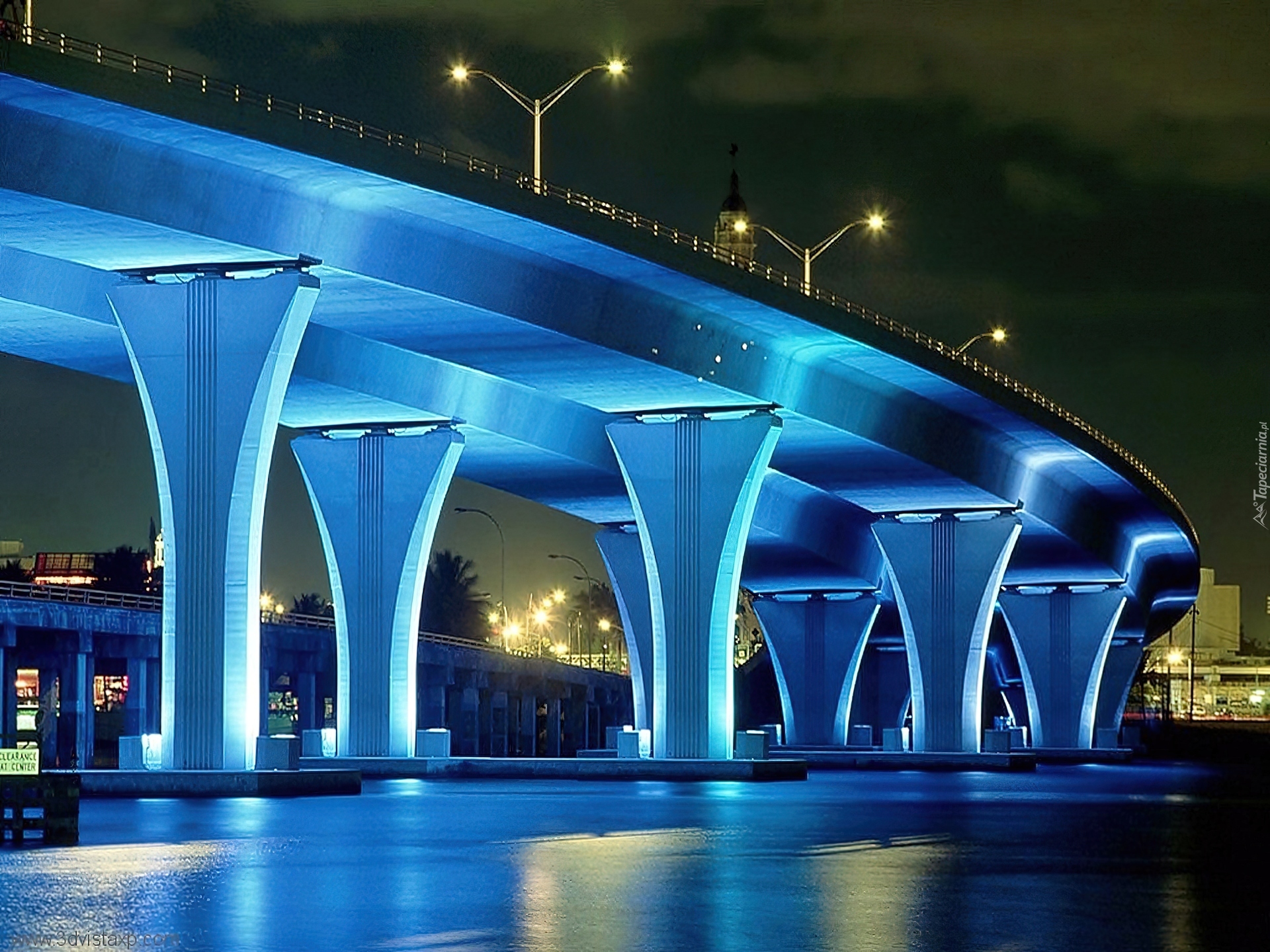 Edytor tapety: Rzeka, Noc, Oświetlony, Most