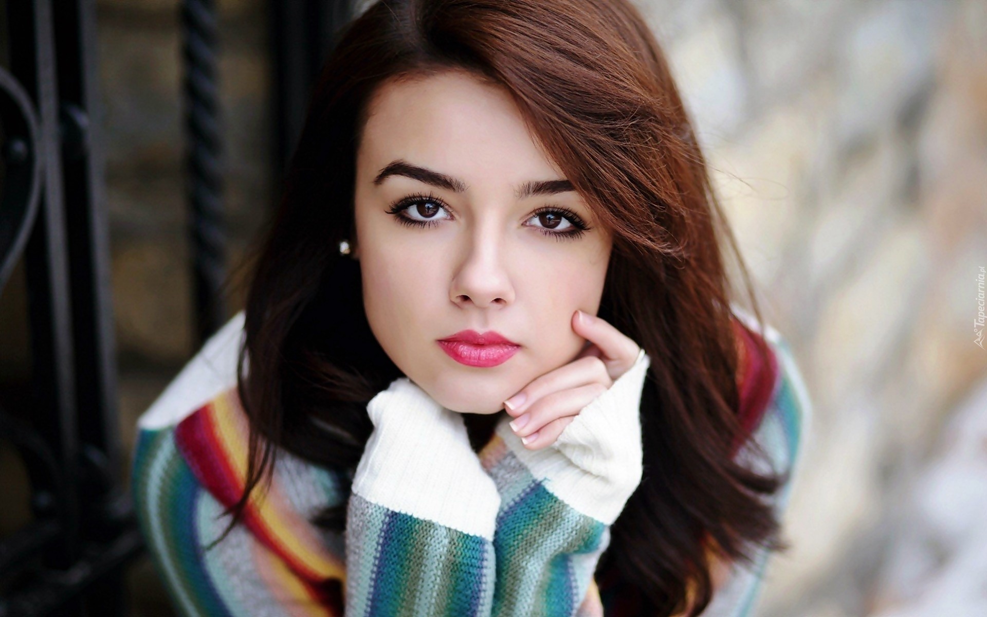 Edytor tapety: Kobieta, Modelka, Rude, Włosy, Makijaż, Kolorowy, Sweterek