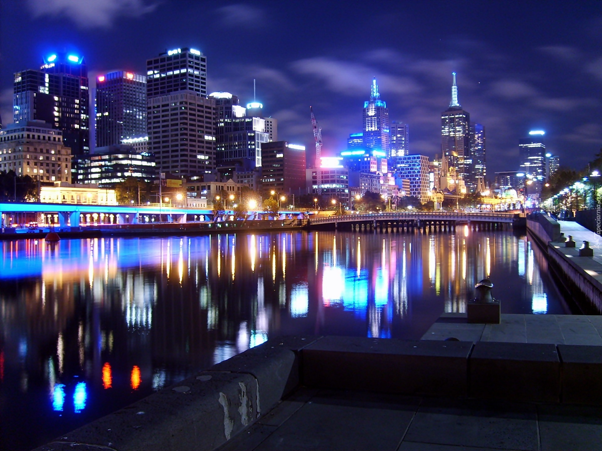 Edytor tapety: Melbourne, Nocna, Panorama, Miasta, Rzeka, Yarra, Most