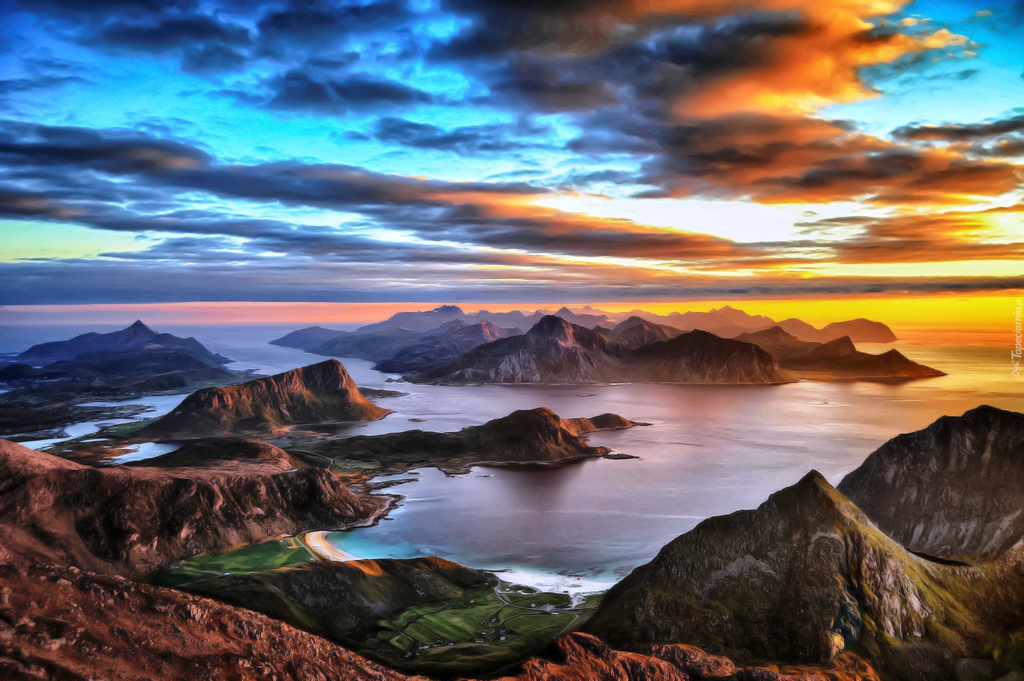 Edytor tapety: Morze, Zachód, Słońca, Skały