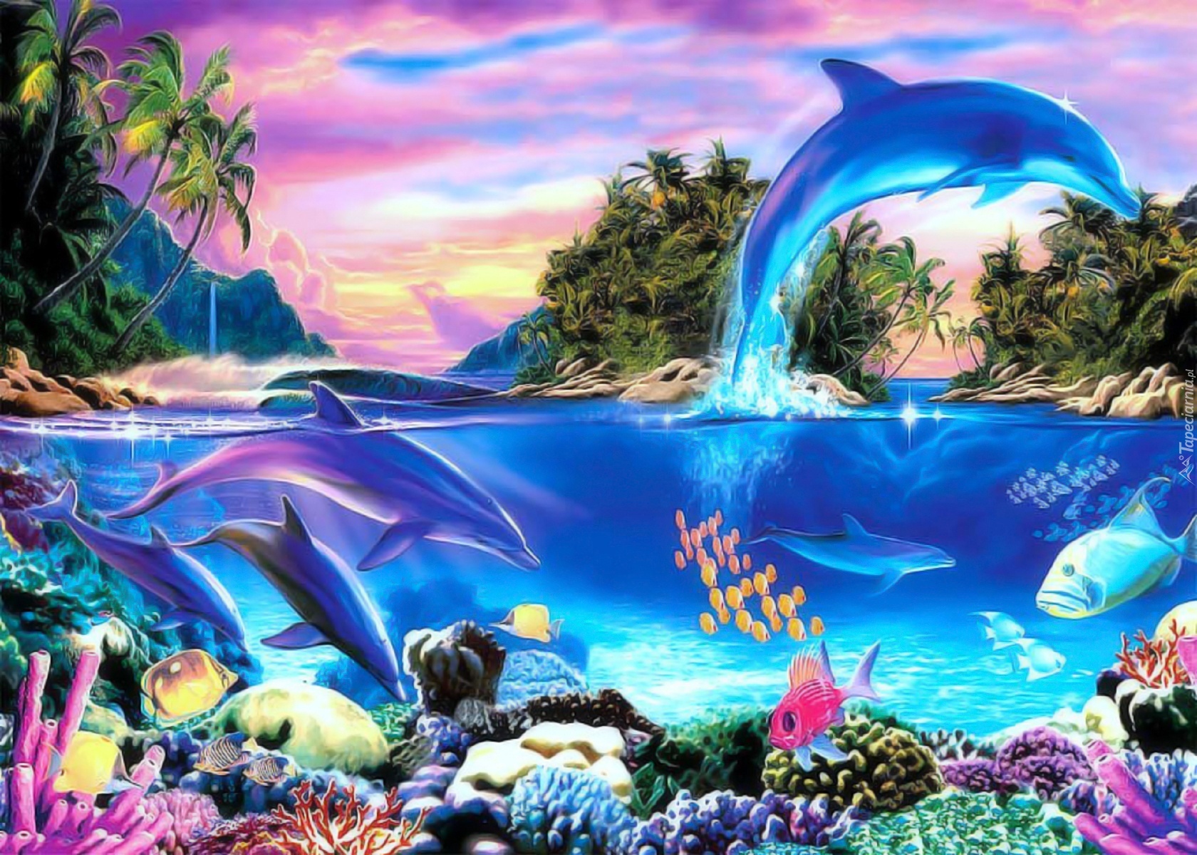 Edytor tapety: Rafa, Koralowa, Rybki, Delfiny