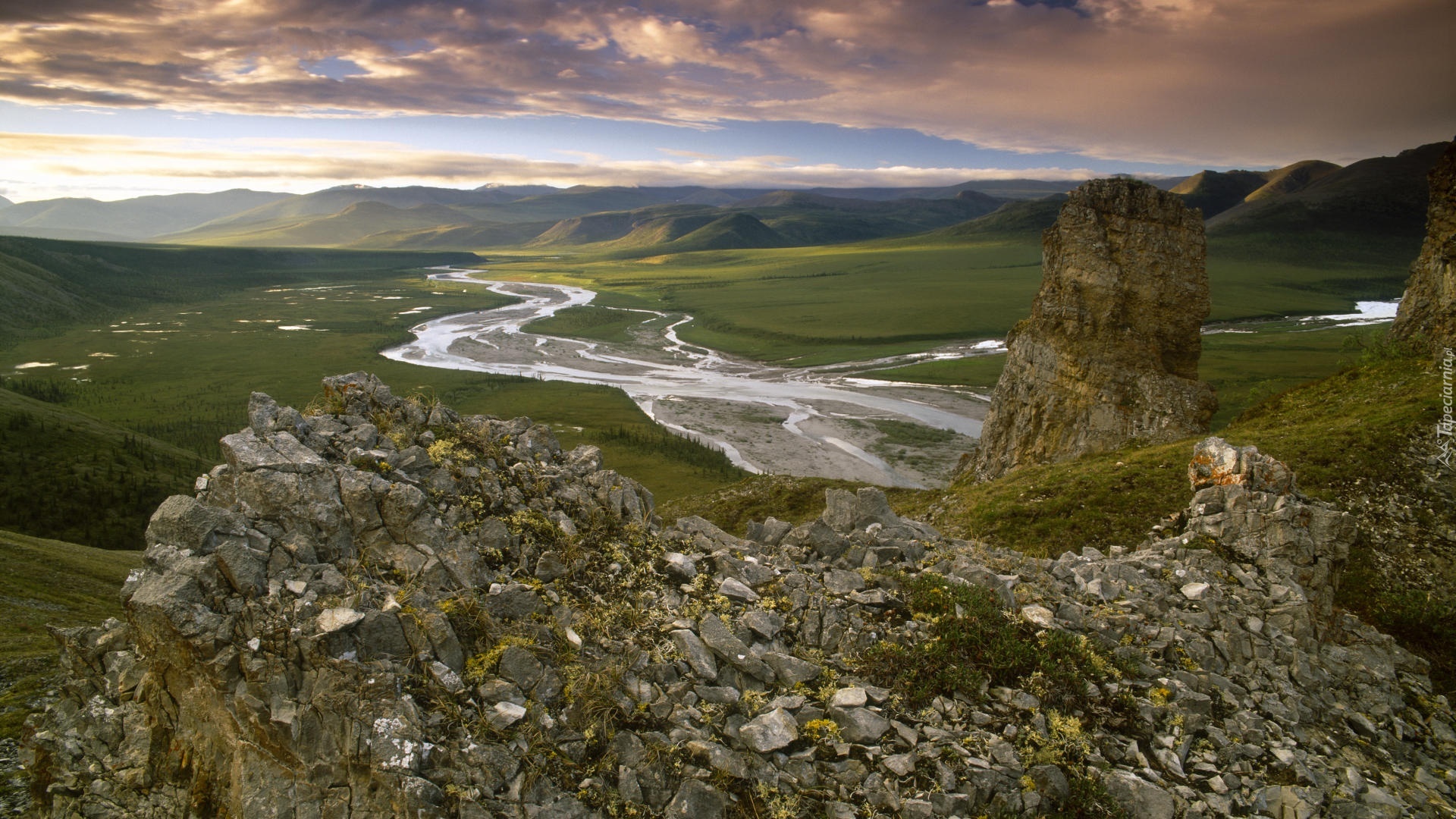 Edytor tapety: Góry, Rzeka, Chmury, Dolina