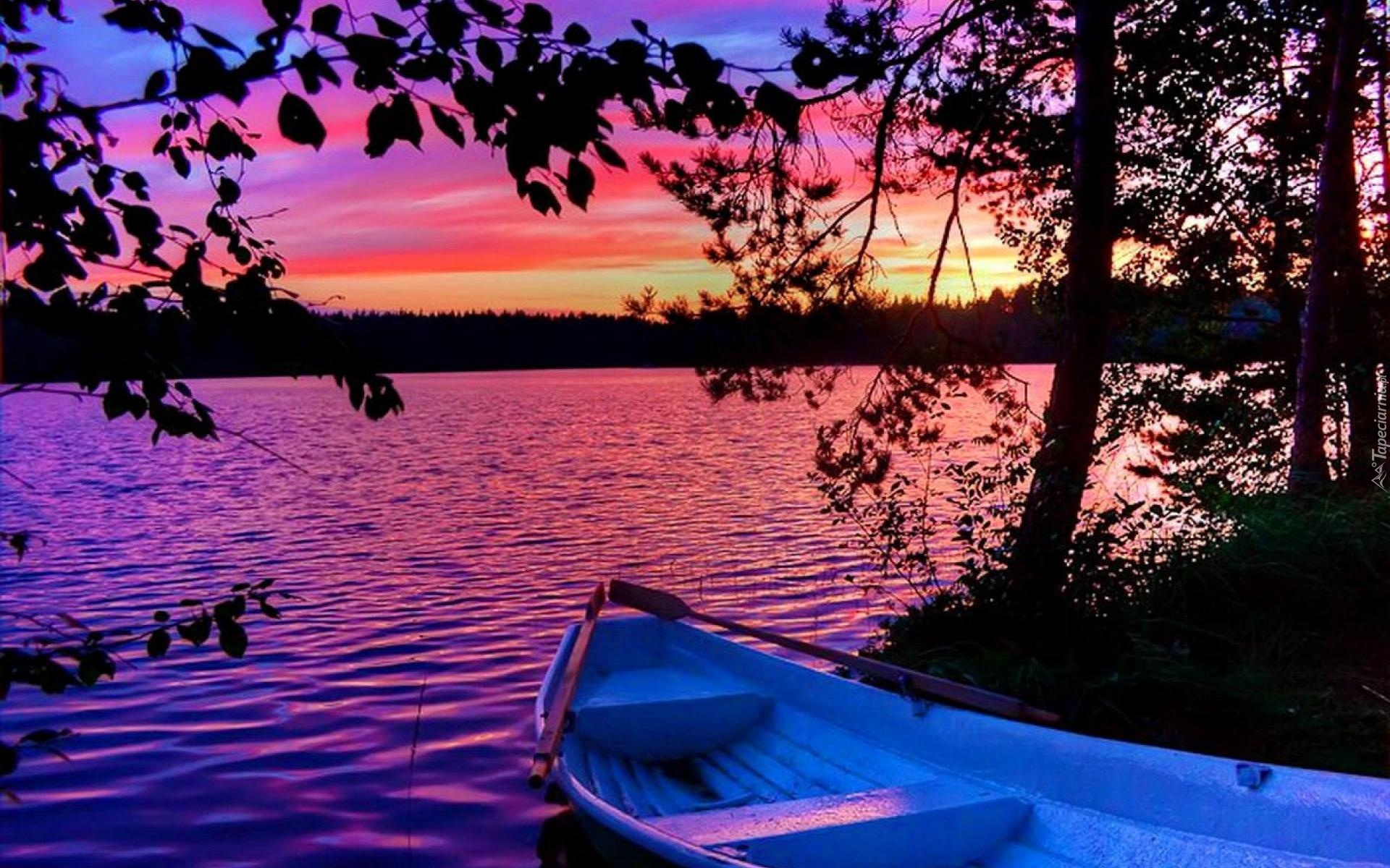 Edytor tapety: Łódka, Jezioro, Drzewa