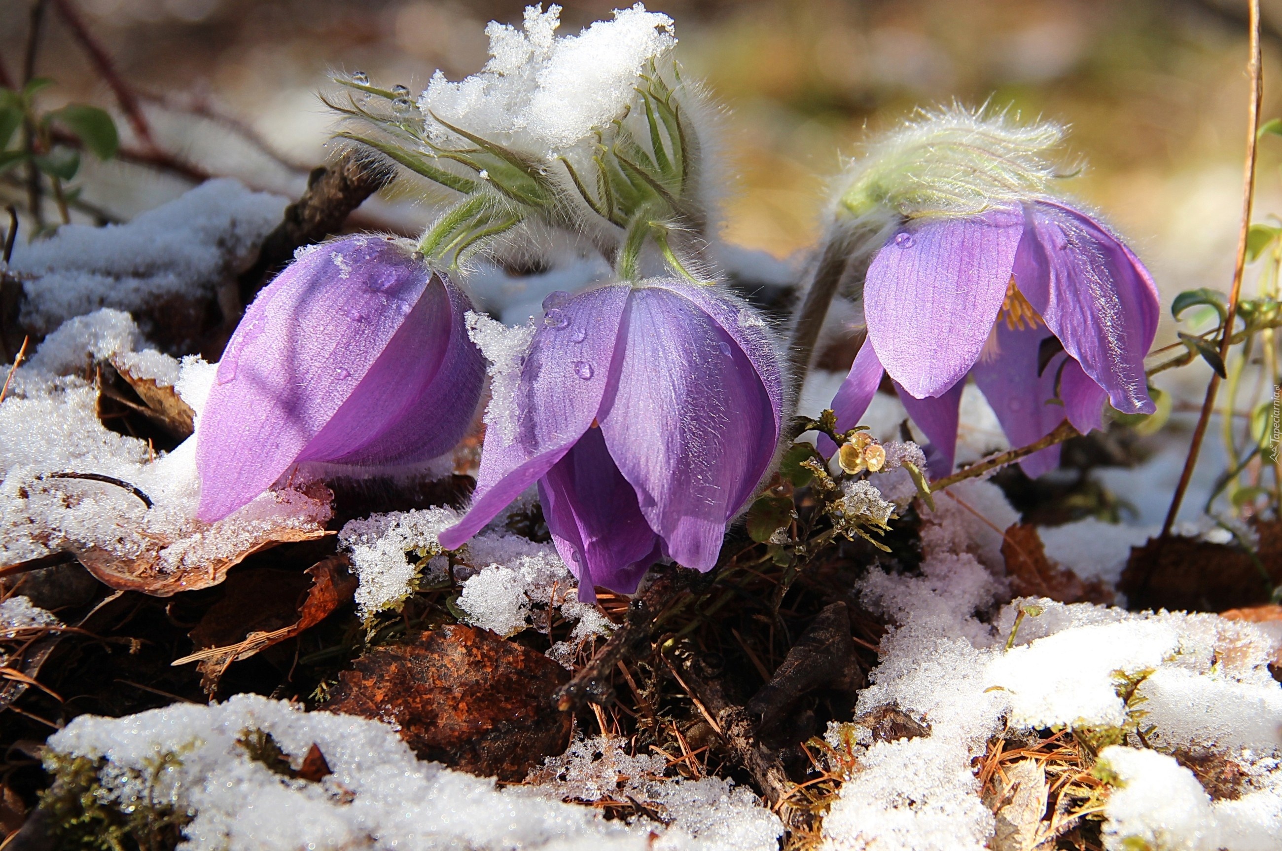 Edytor tapety: Sasanki, Łąka, Śnieg, Wiosna
