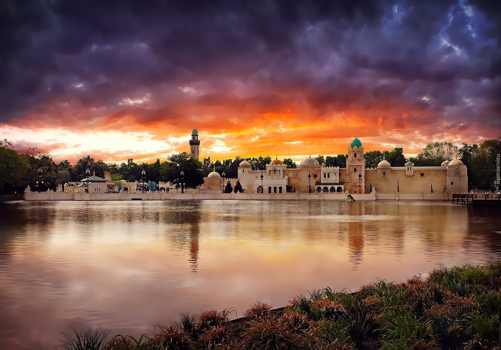 Edytor tapety: Budowla, Jeziorko, Niebo, Chmury