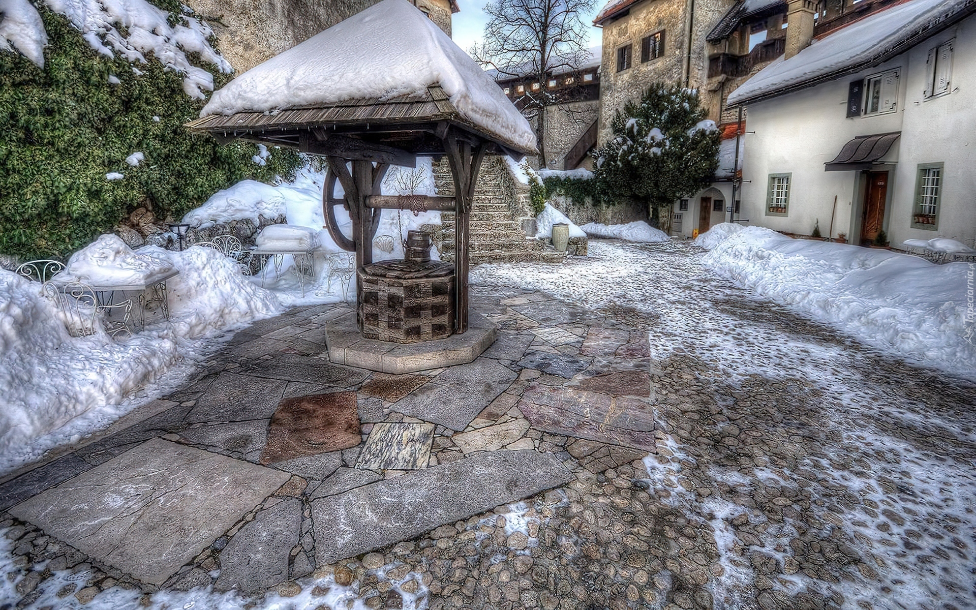 Edytor tapety: Domy, Podwórko, Zima, Studnia, Schody