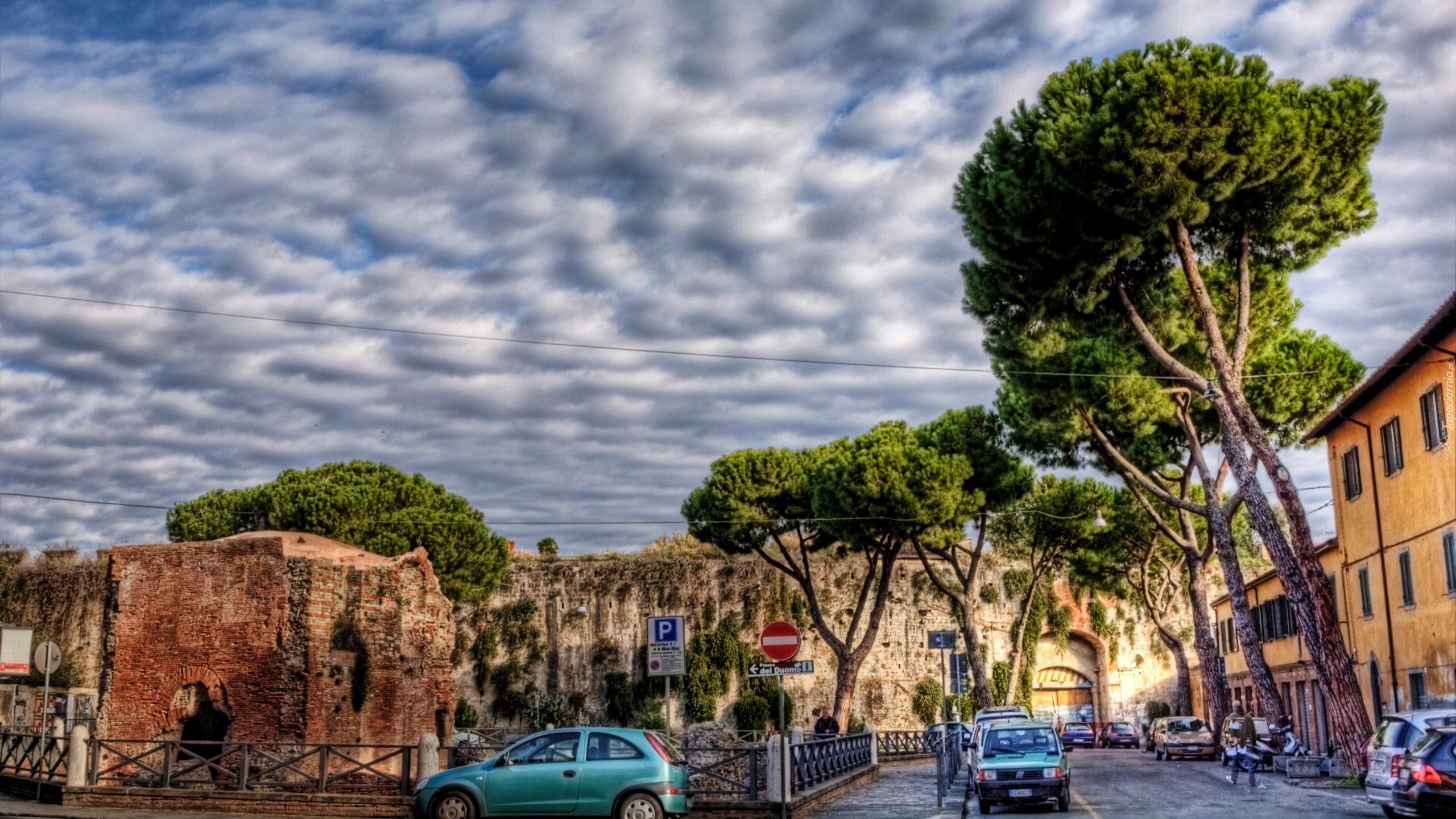 Edytor tapety: Włochy, Piza, Domy, Drzewa, Samochody
