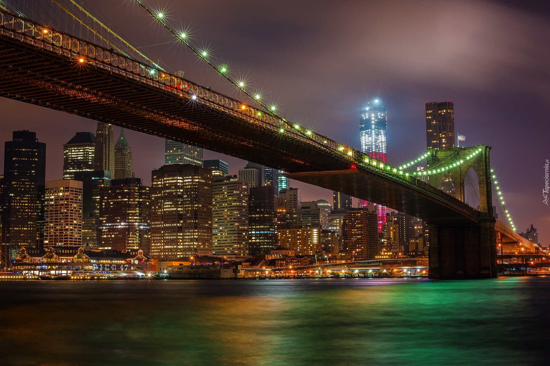 Edytor tapety: Brooklyn, Bridge, Nocna, Panorama, Miasta