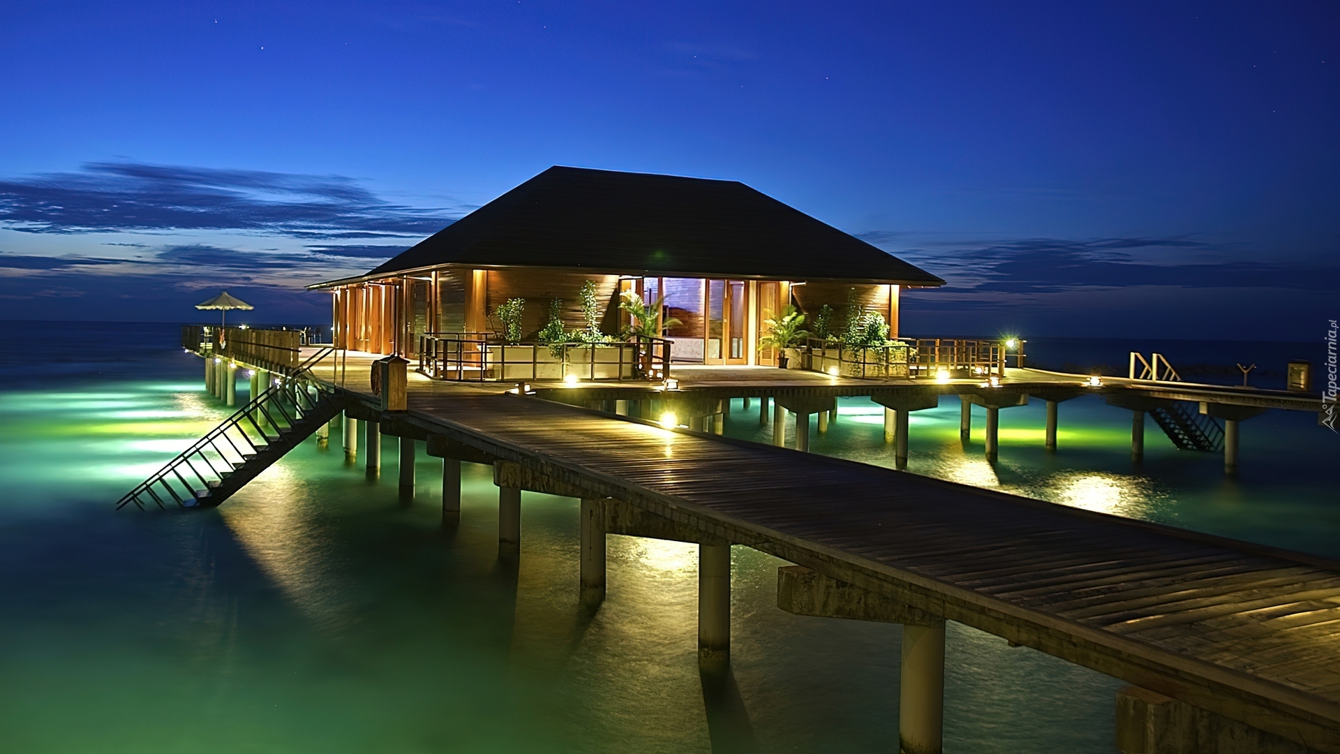Edytor tapety: Ocean, Pomost, Oświetlony, Dom