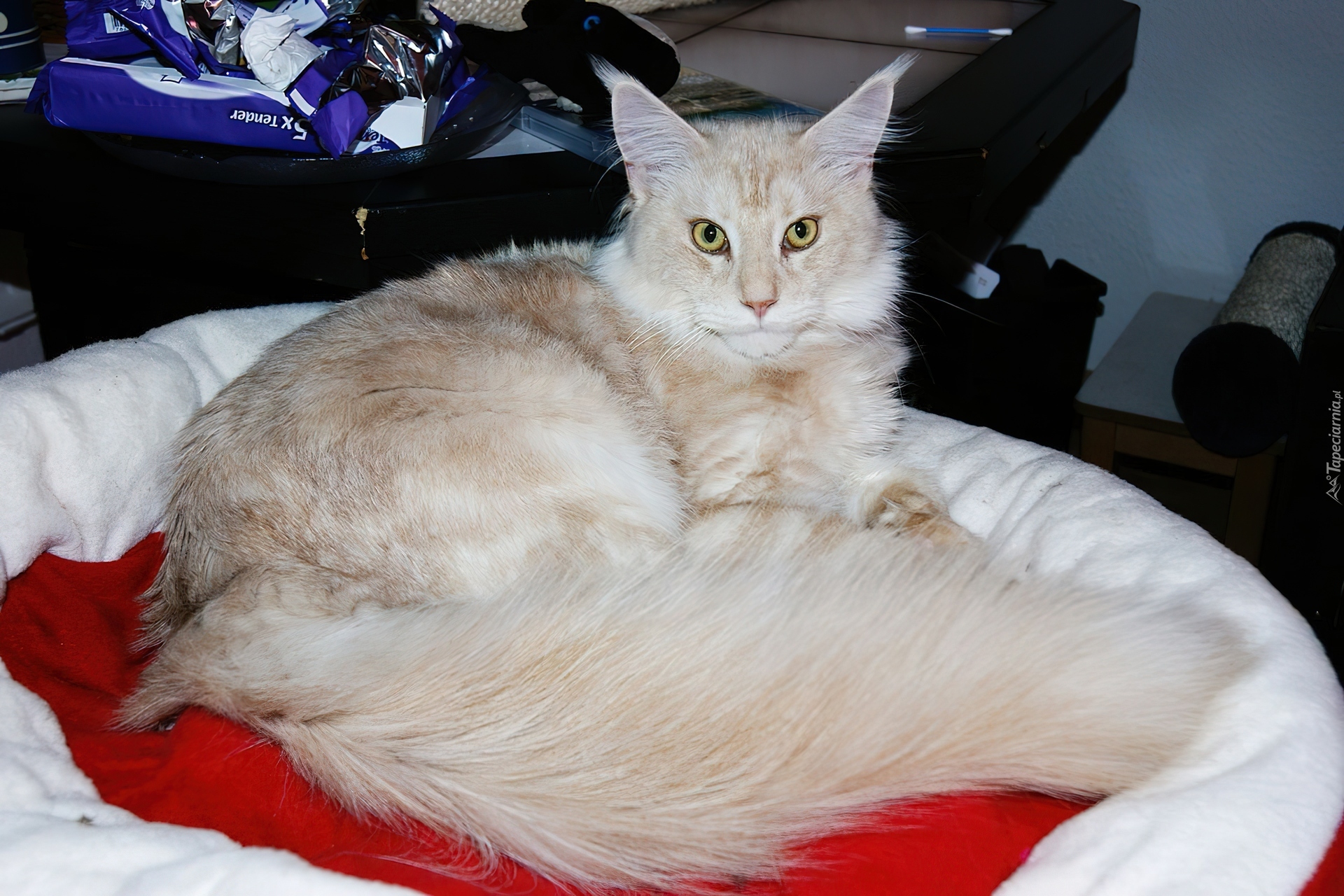 Edytor tapety: Kotek, Legowisko, Maine Coon