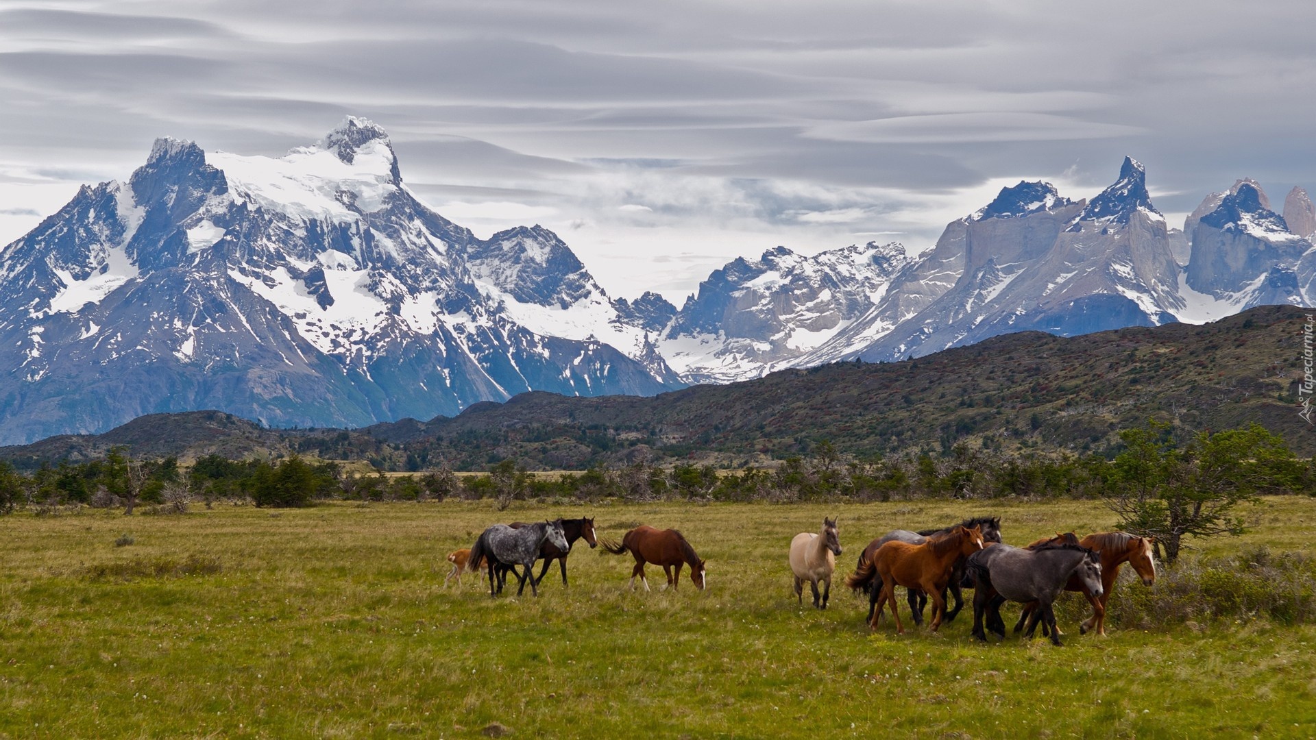 Edytor tapety: Góry, Łąka, Stado, Koni