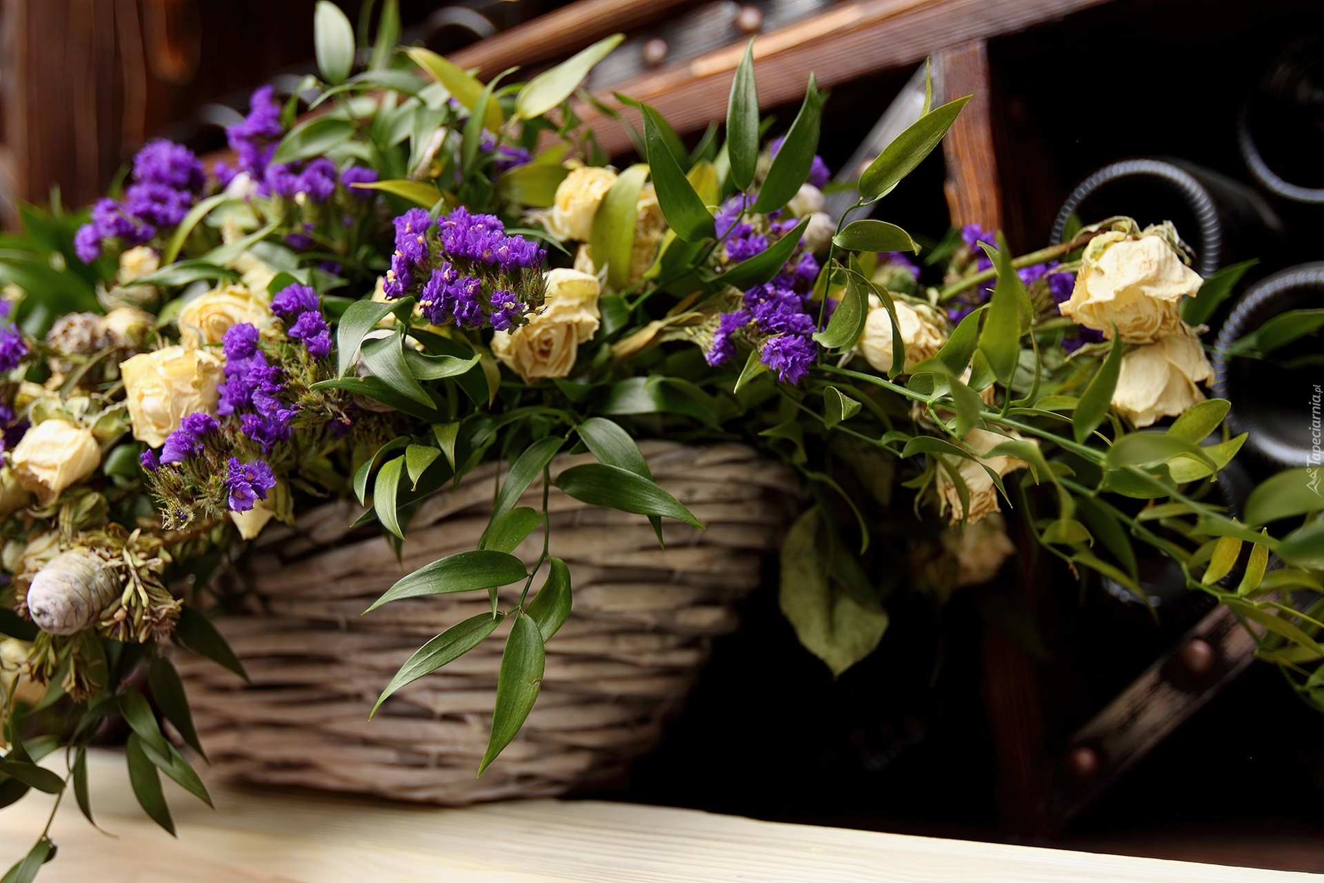 Edytor tapety: Koszyk, Polne, Kwiaty, Róże