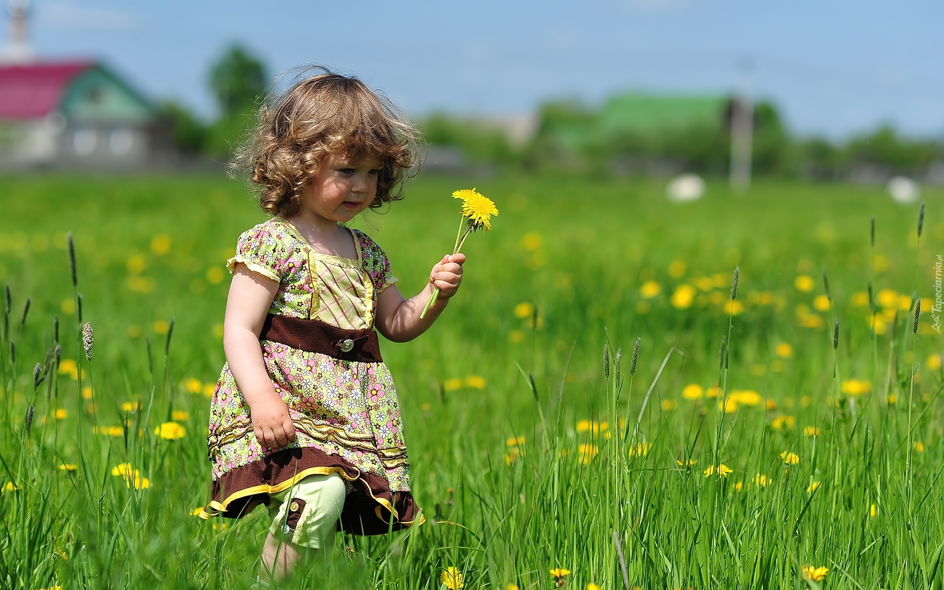 Edytor tapety: Dziewczynka, Łąka, Mniszek, Pospolity