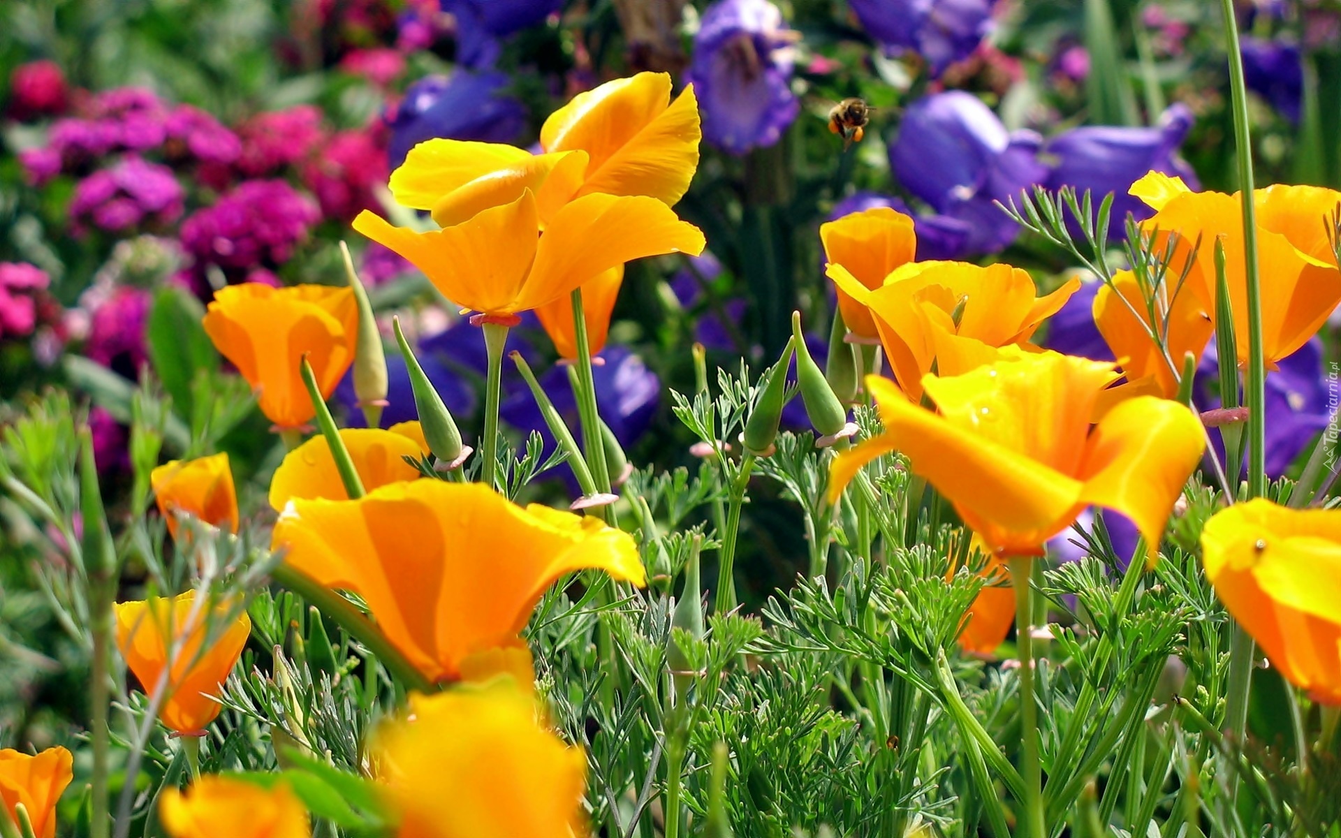 Edytor tapety: Lato, Łąka, Maczki kalifornijskie, Pozłotka kalifornijska