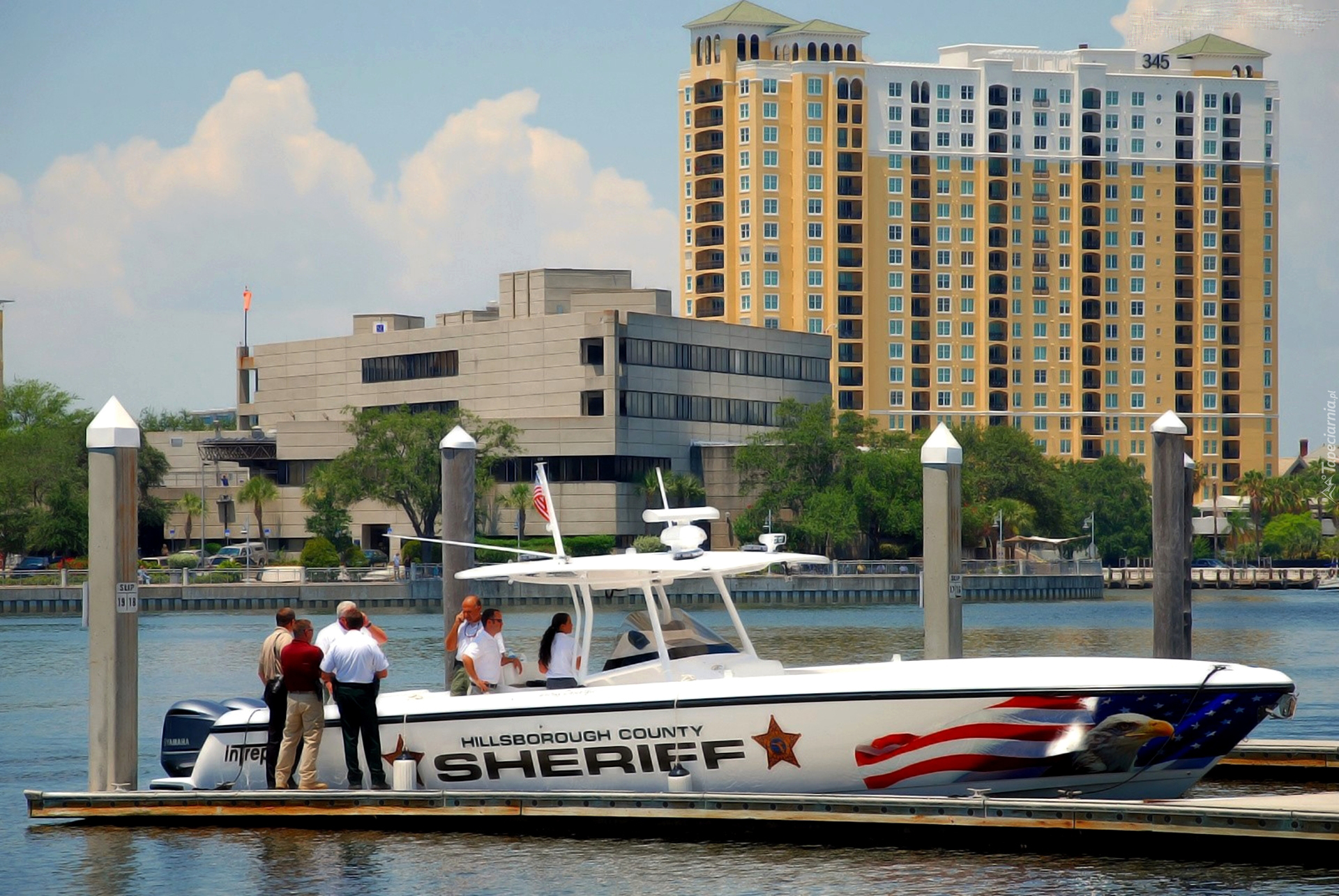 Edytor tapety: Motorówka, Rzeka, Ludzie, Budynki