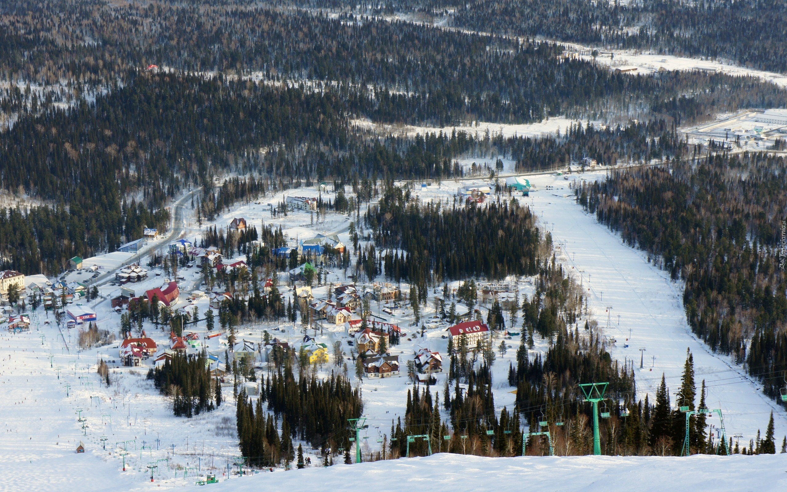 Edytor tapety: Góry, Lasy, Wyciąg, Narciarski, Domy, Miasteczko, Turystyczne, Zima
