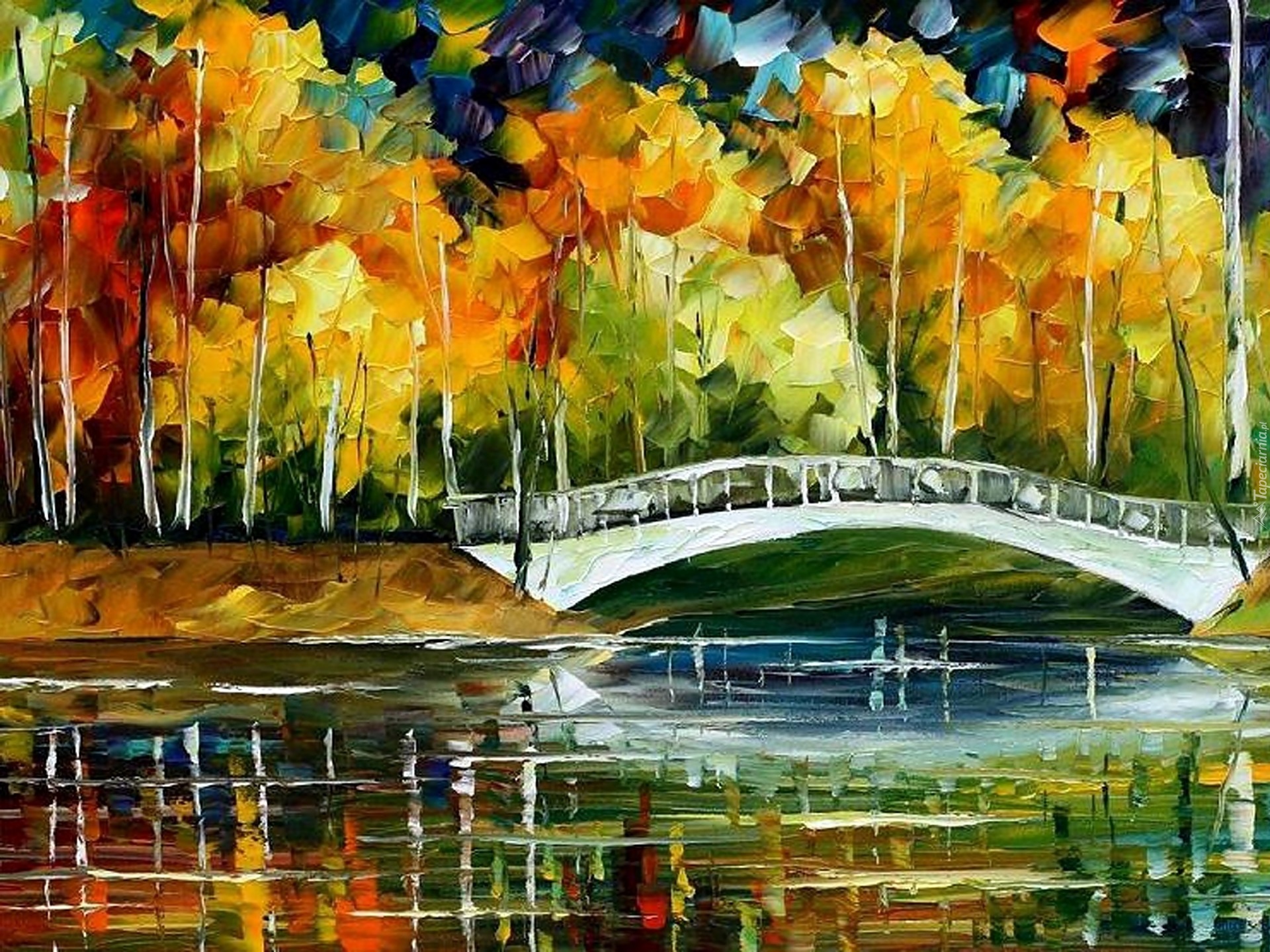 Edytor tapety: Leonid, Afremov, Park, Mostek, Staw