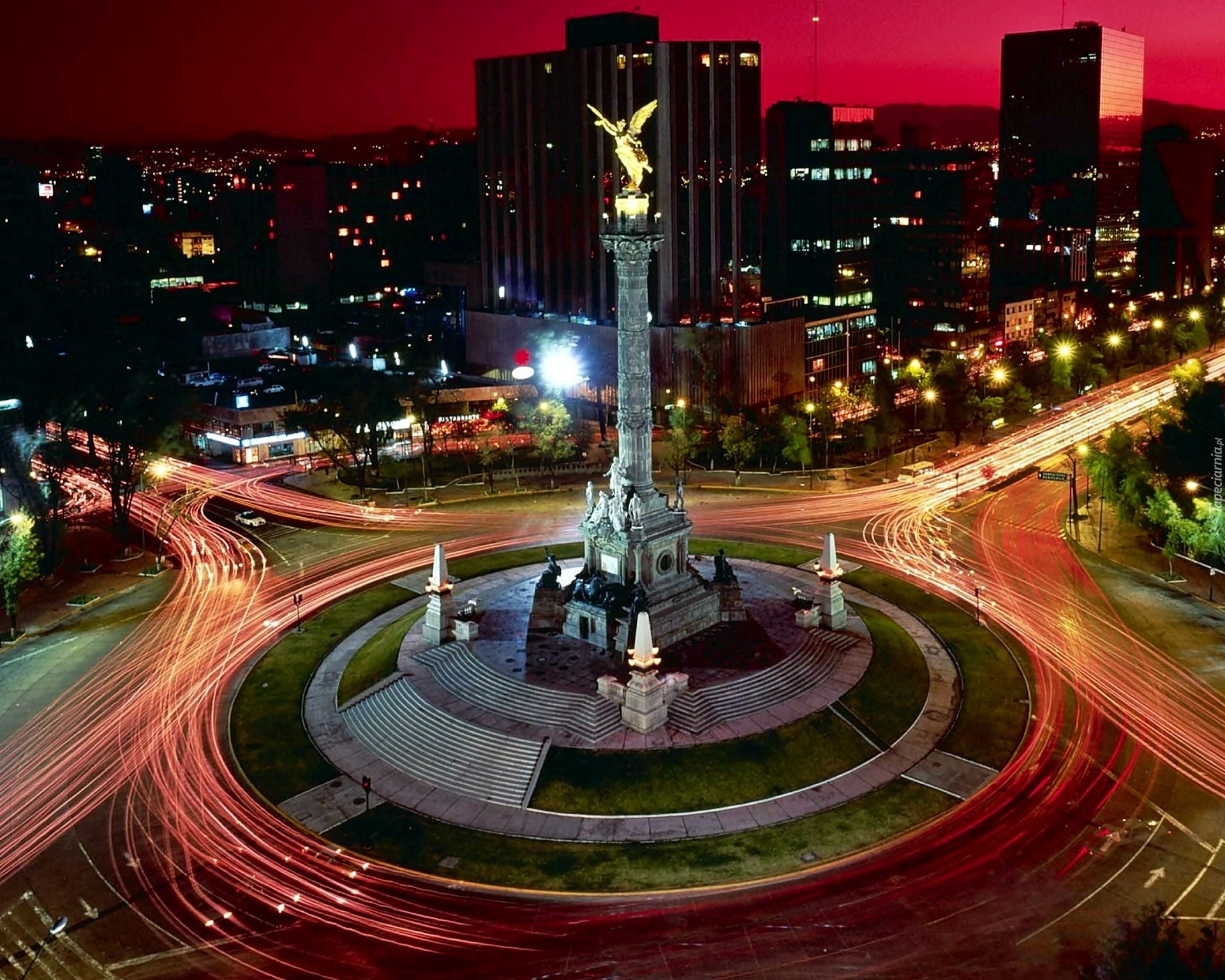 Edytor tapety: Meksyk, Nocna, Panorama, Miasta, Rondo, Pomnik, Anioła