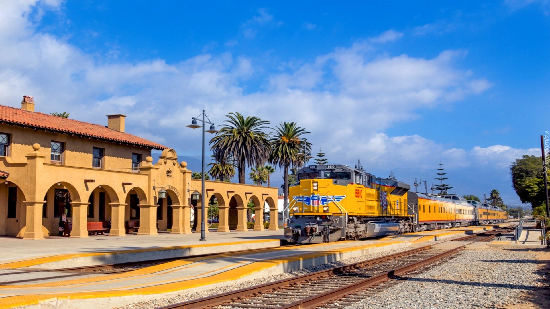 Edytor tapety: Stany Zjednoczone, Los Angeles, Pociąg, Dworzec, Palmy