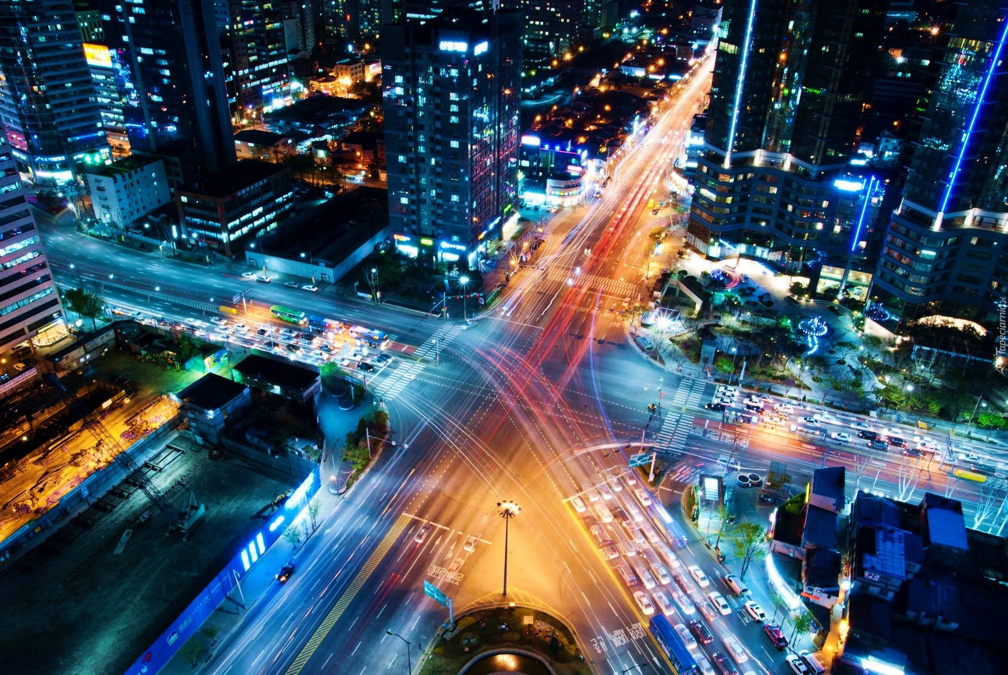 Edytor tapety: Skrzyżowanie, Miasto, Noc, Domy