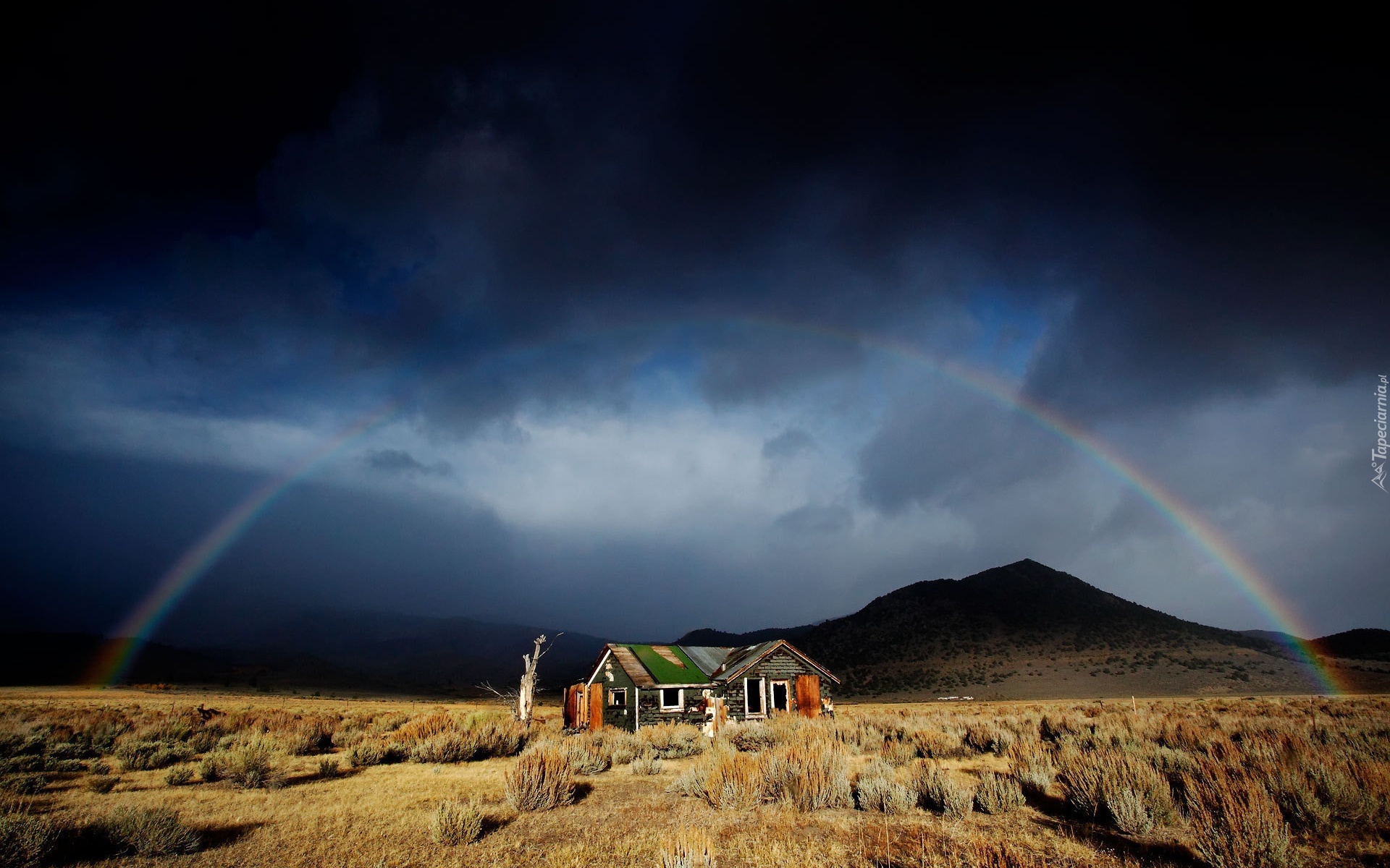 Edytor tapety: Dom, Góry, Tęcza, Niebo