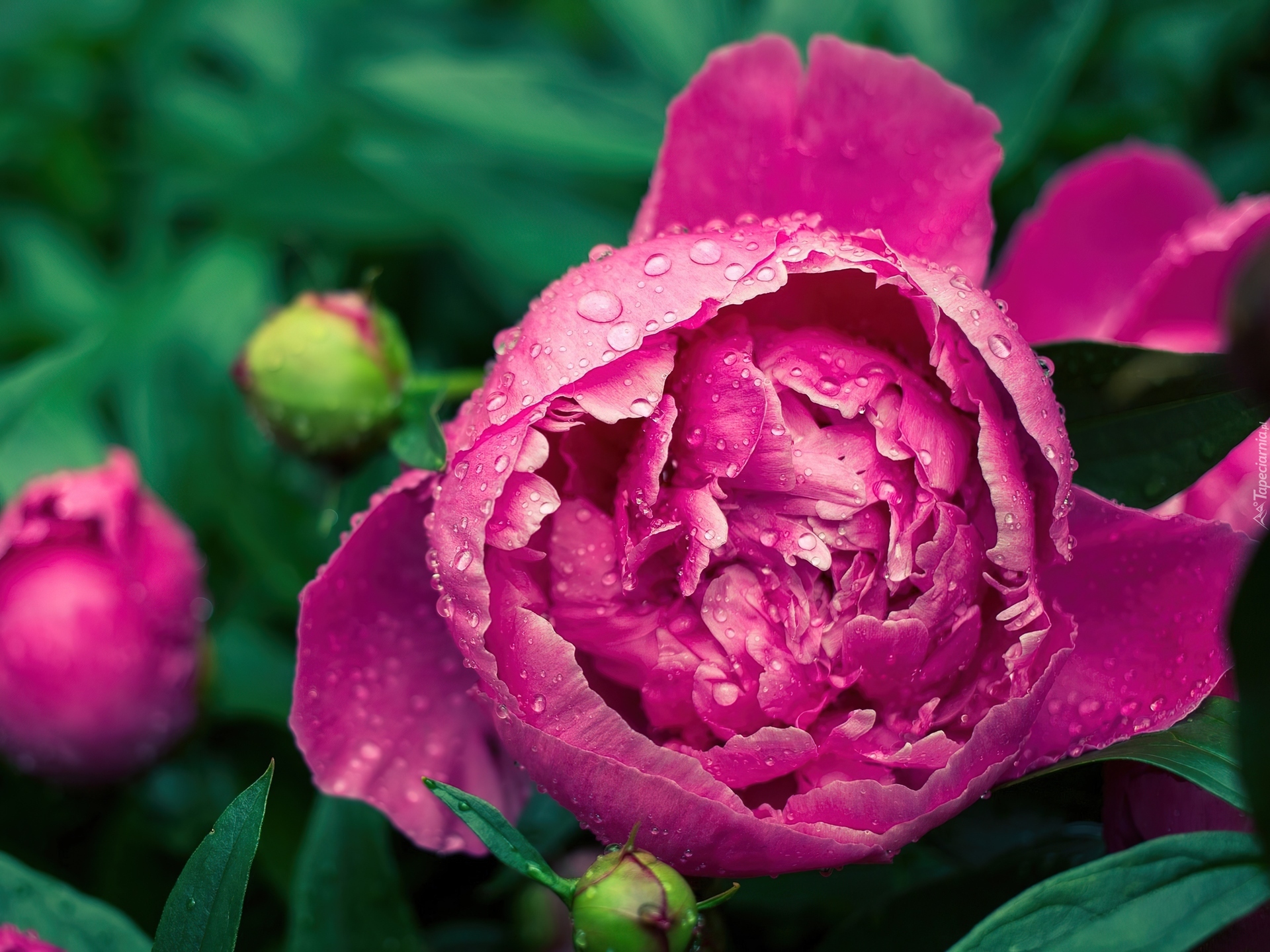 Edytor tapety: Różowa, Piwonia, Pąki, Krople