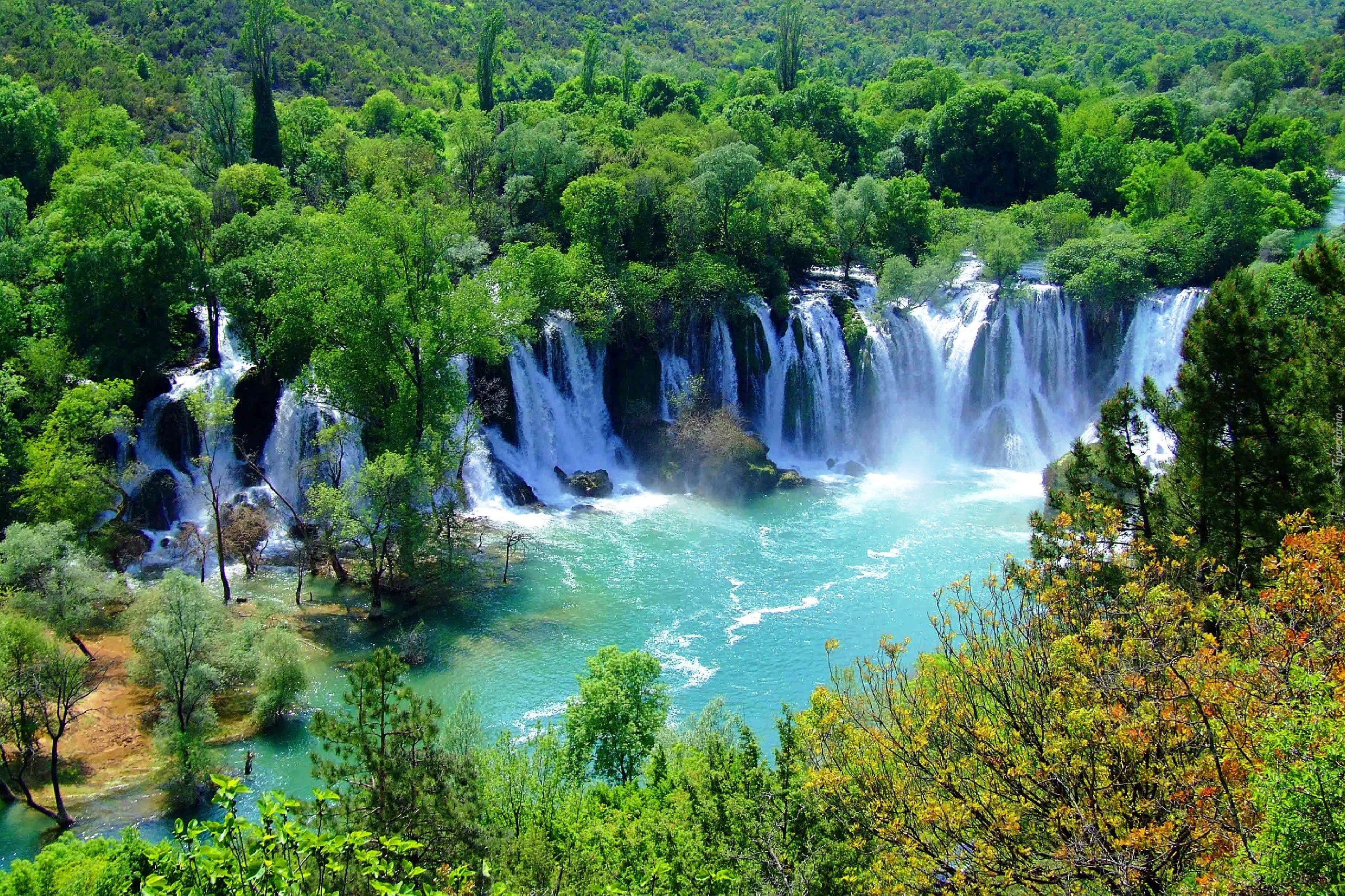 Edytor tapety: Wodospad, Rzeka, Las