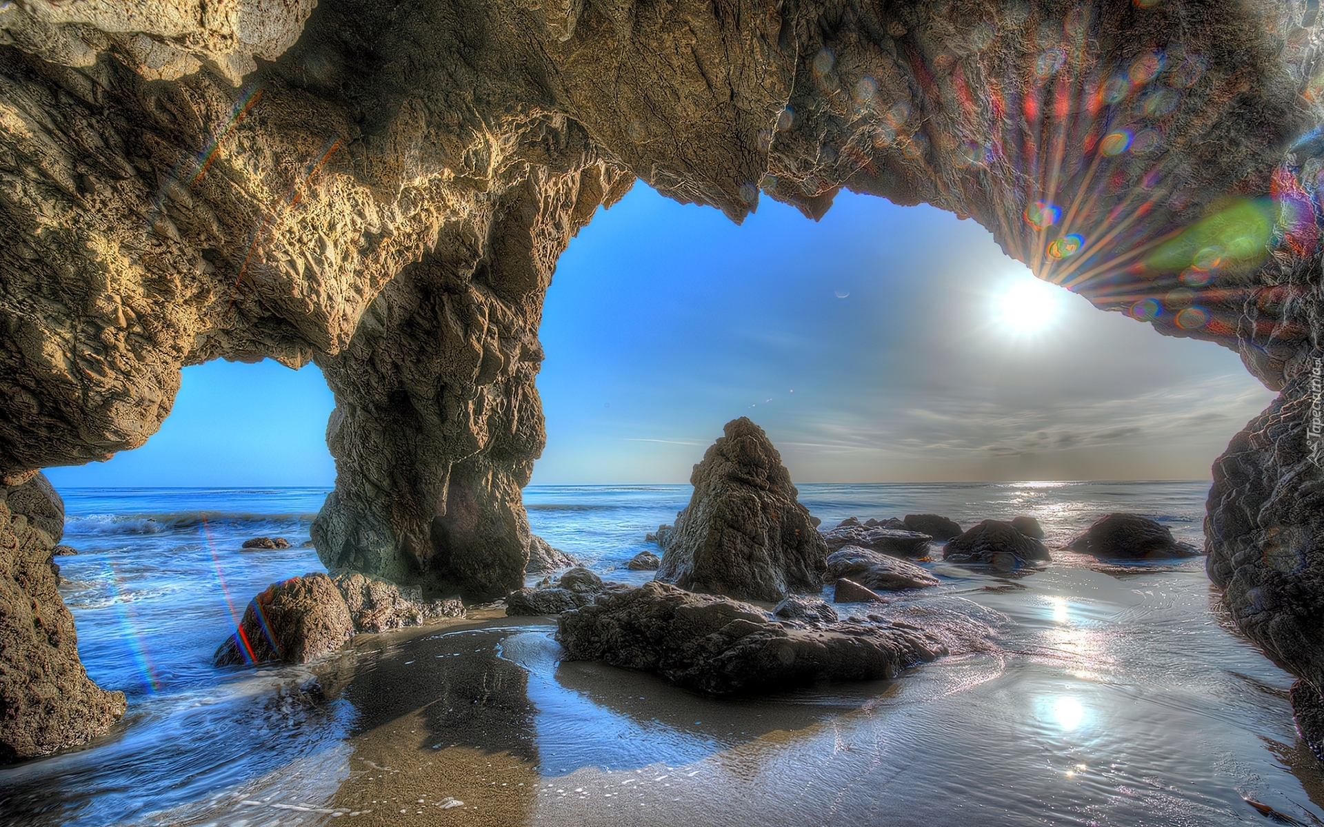Edytor tapety: Morze, Skały, Promienie, Słońca