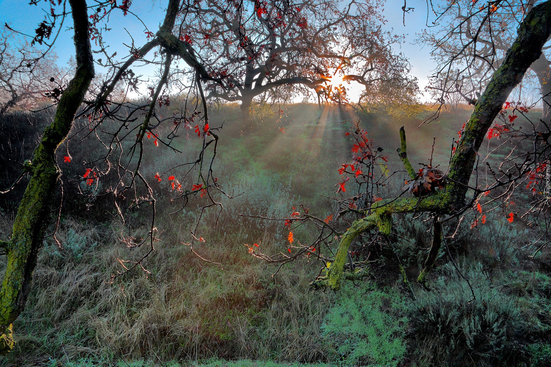 Edytor tapety: Wschód Słońca, Łąka, Drzewa