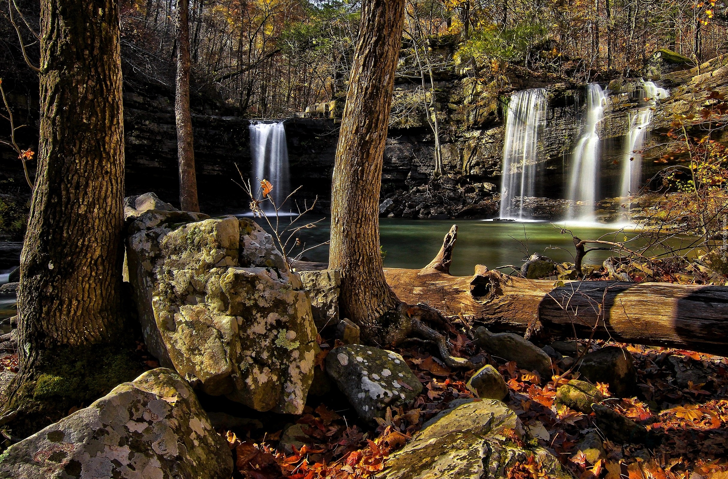 Edytor tapety: Las, Wodospady, kamienie, Jesień