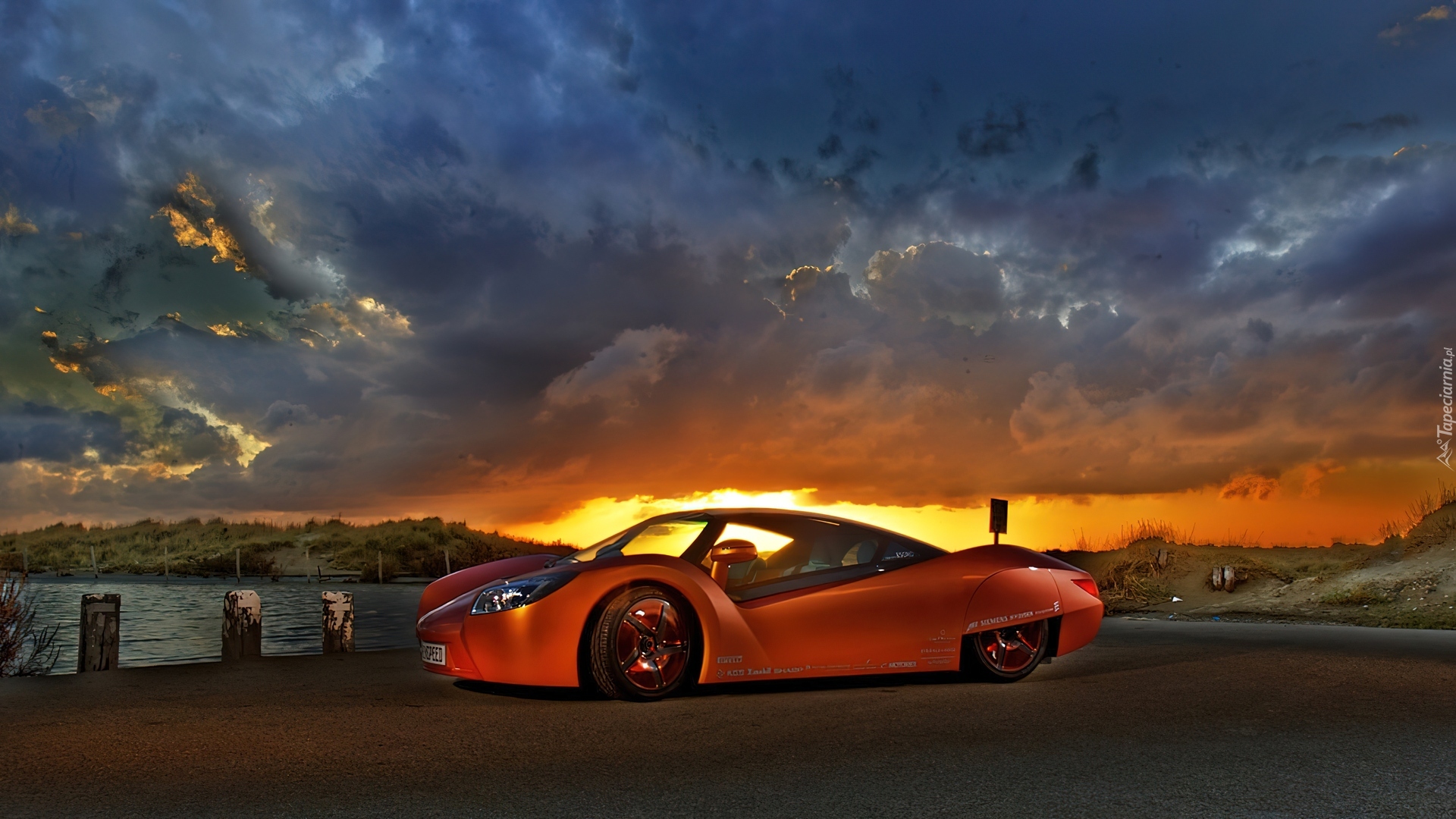Edytor tapety: Czerwony, Samochód, Rinspeed, Ichange, Zachód Słońca