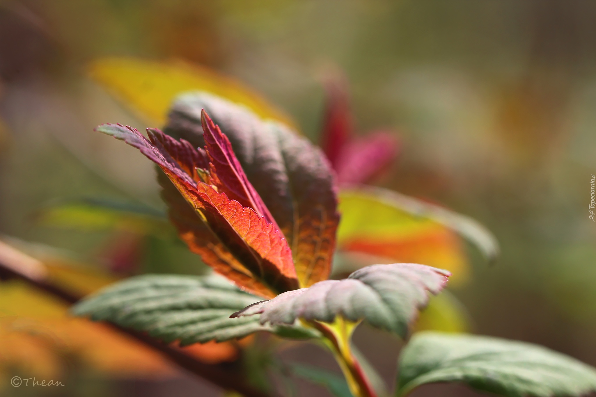 Edytor tapety: Tawuła Japońska, Krzew, Czerwone, Liście
