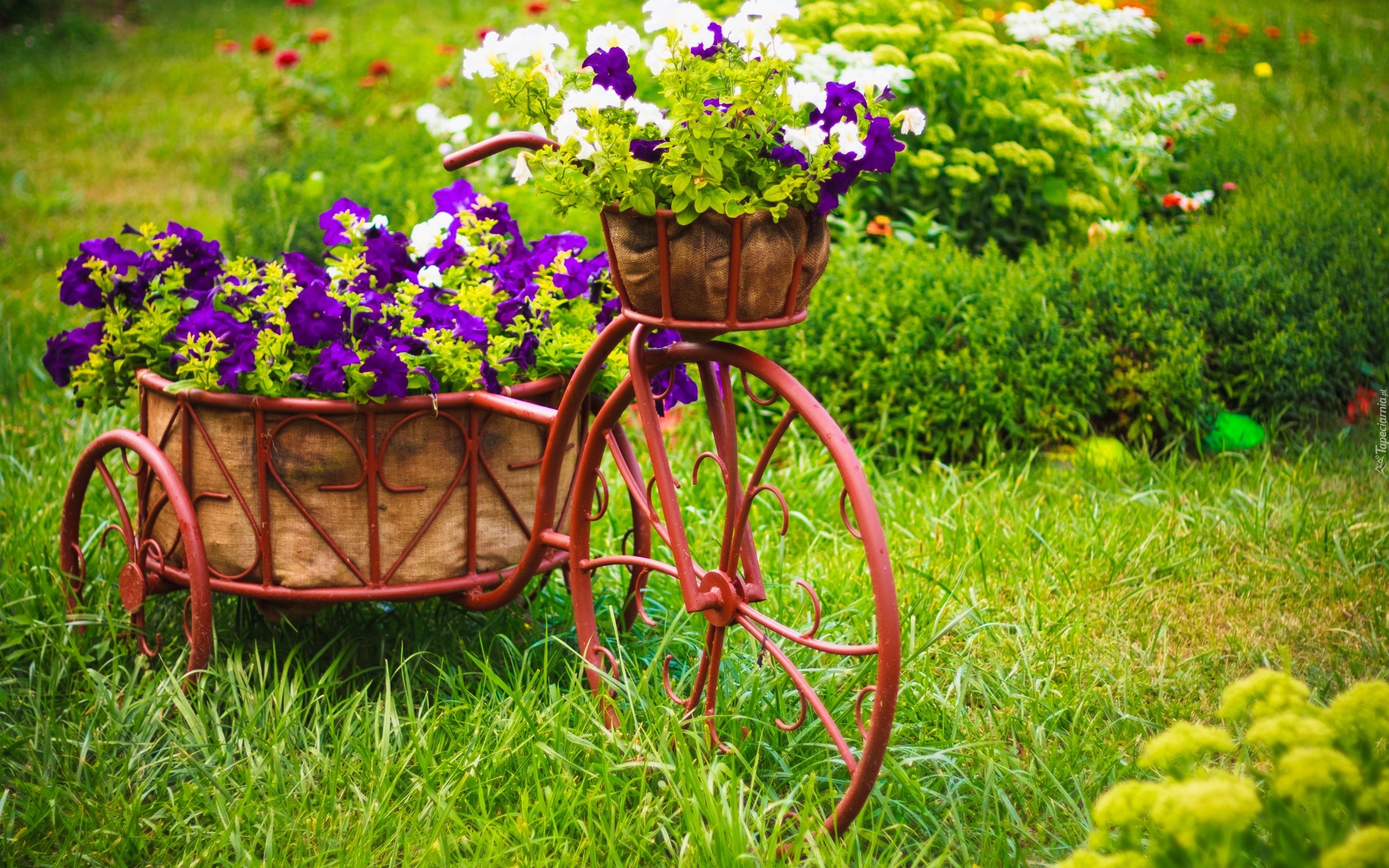Edytor tapety: Rower, Kwietnik, Donice, Kwiaty, Ogród