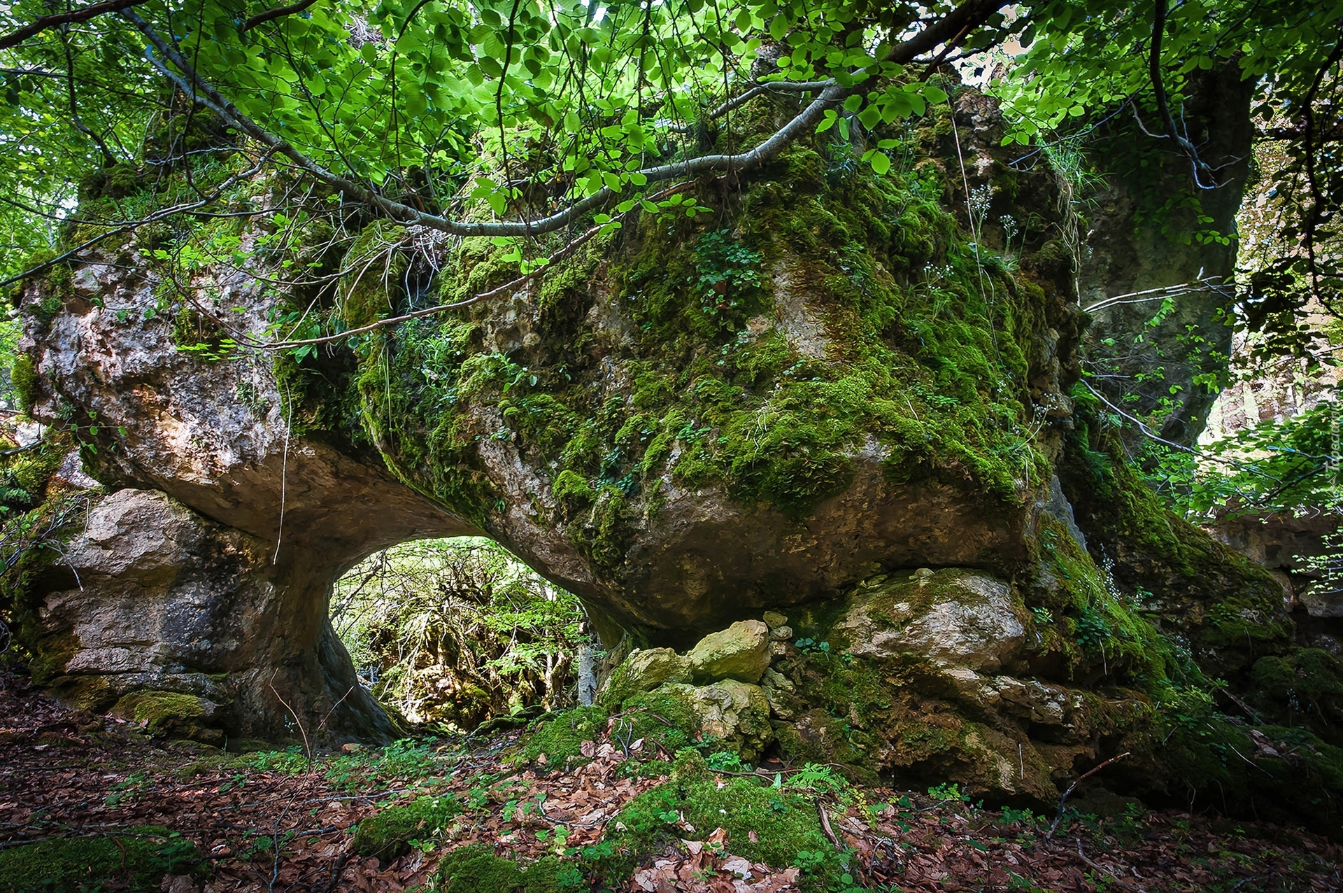 Edytor tapety: Skała, Mech, Las, Drzewa