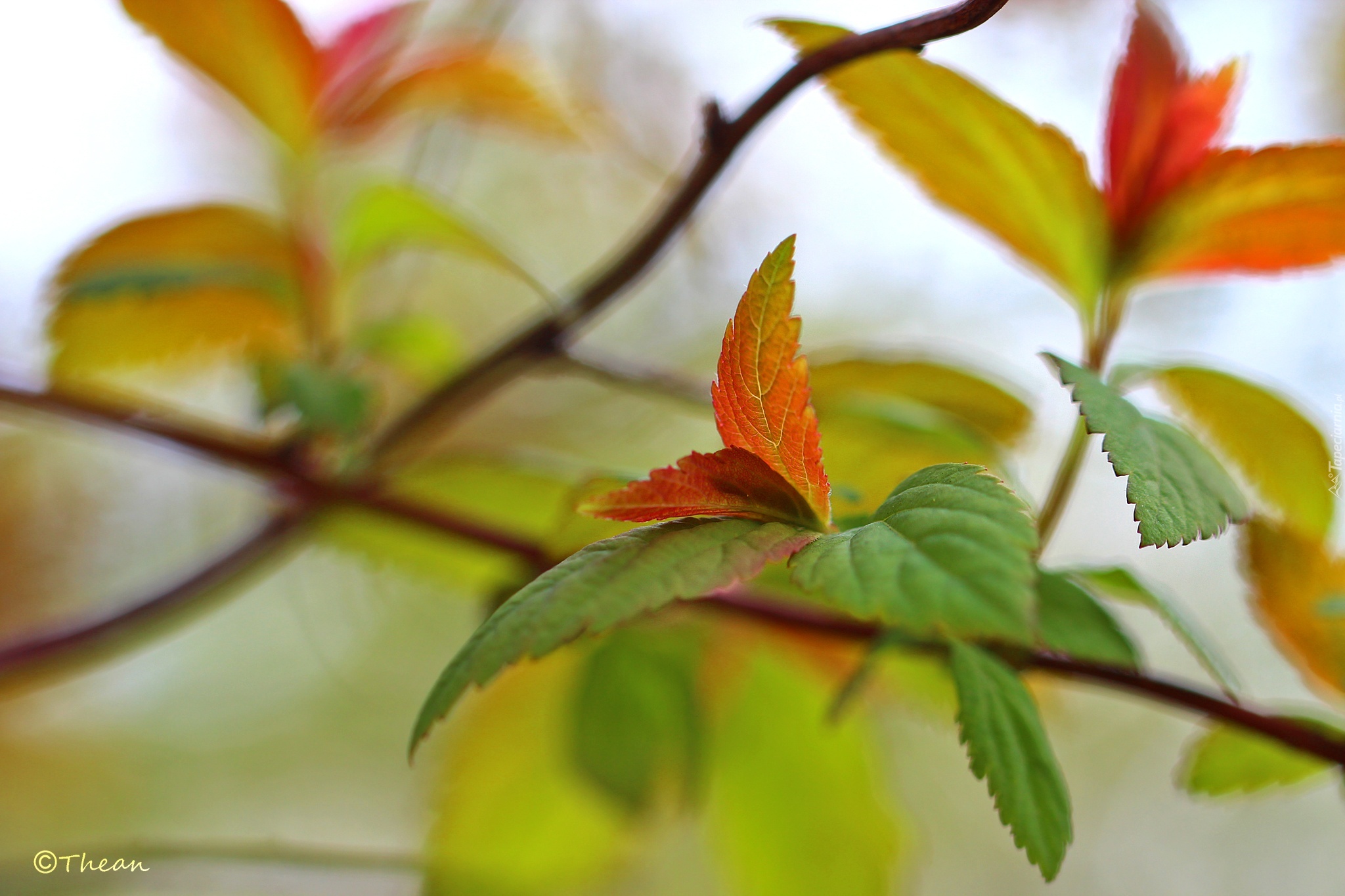 Edytor tapety: Tawuła Japońska, Krzew, Czerwone, Liście