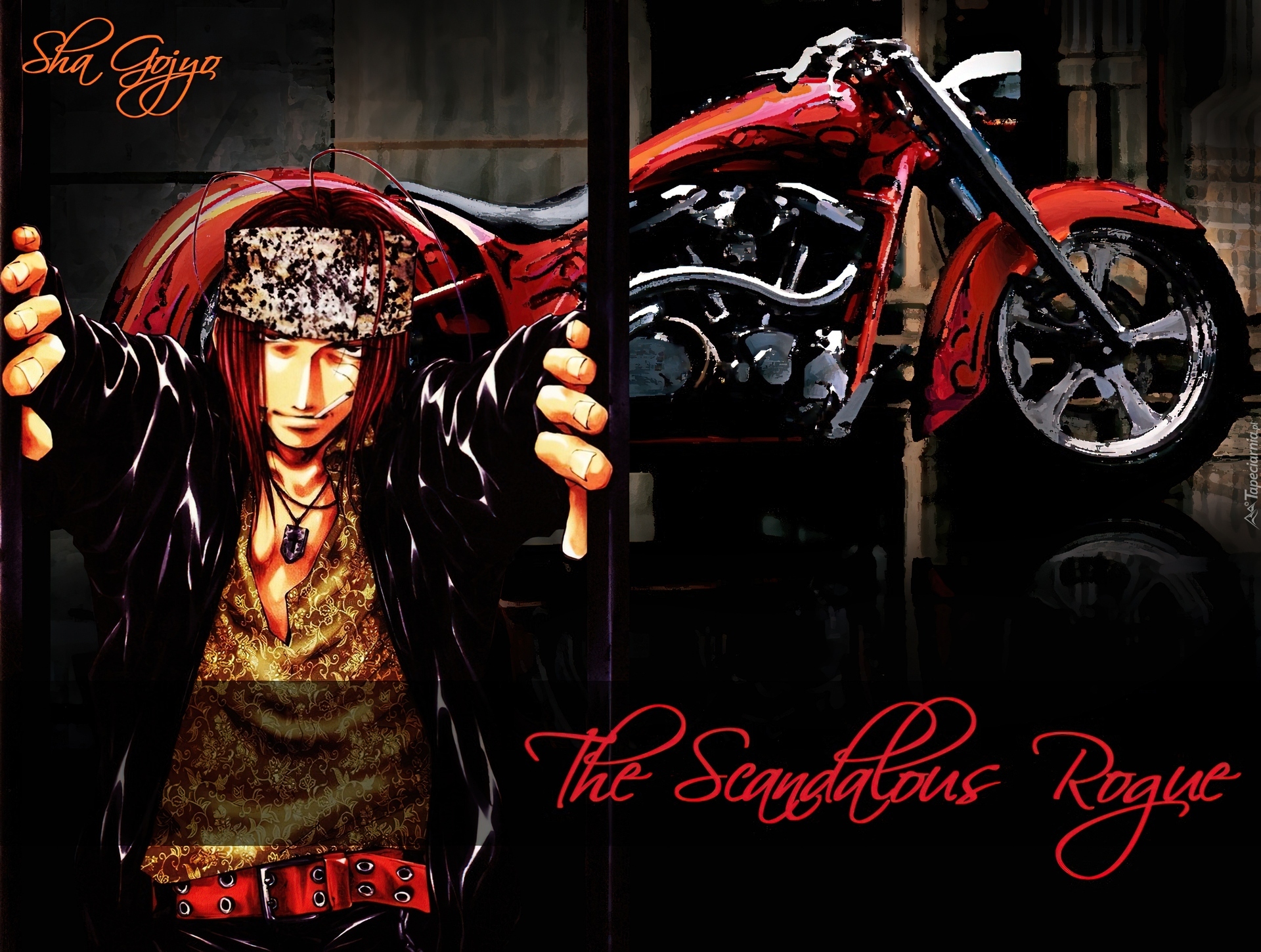 Edytor tapety: Saiyuki, czerwone włosy, motor
