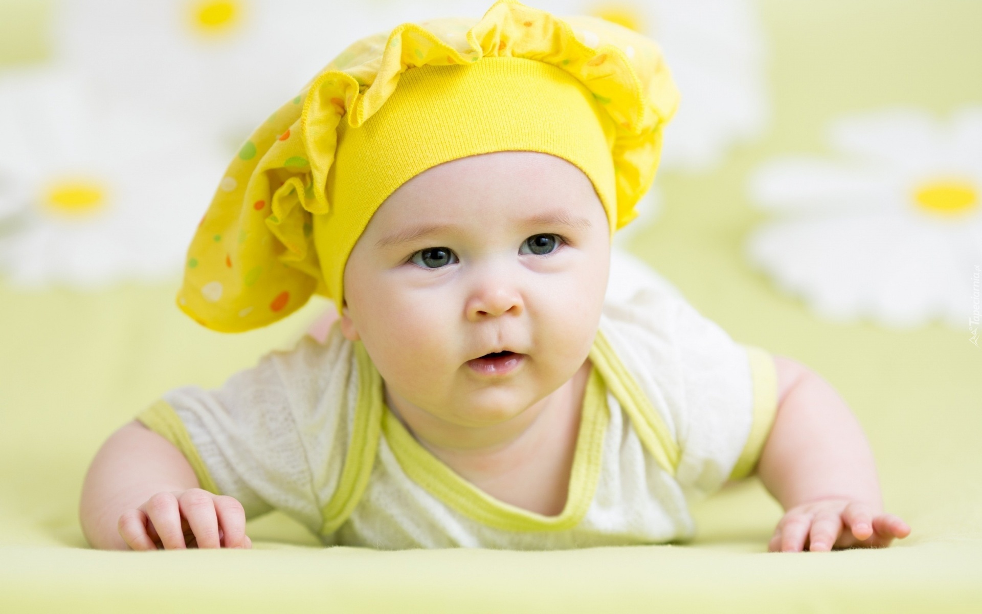 Edytor tapety: Raczkujące, Dziecko, Niemowlę, Żółty, Beret